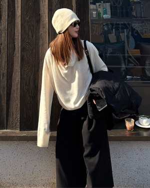 #ウールパンツ #ストレートパンツ #ワイドパンツ #ブラックパンツ #体型カバー #美脚シルエット