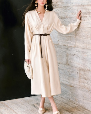 光沢感のあるとろみ素材が上品な印象を与えるロング丈シャツワンピース。ウエストの切り替えがスタイルアップを叶え、スカート部分はふんわりと広がるフレアシルエット。さらっとした質感で動きに合わせて揺れるエレガントな一枚です。