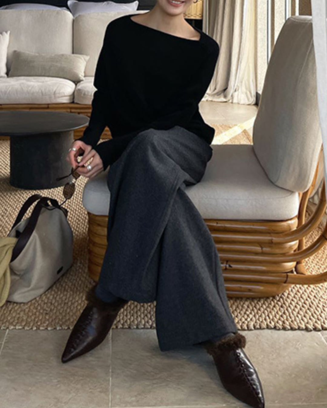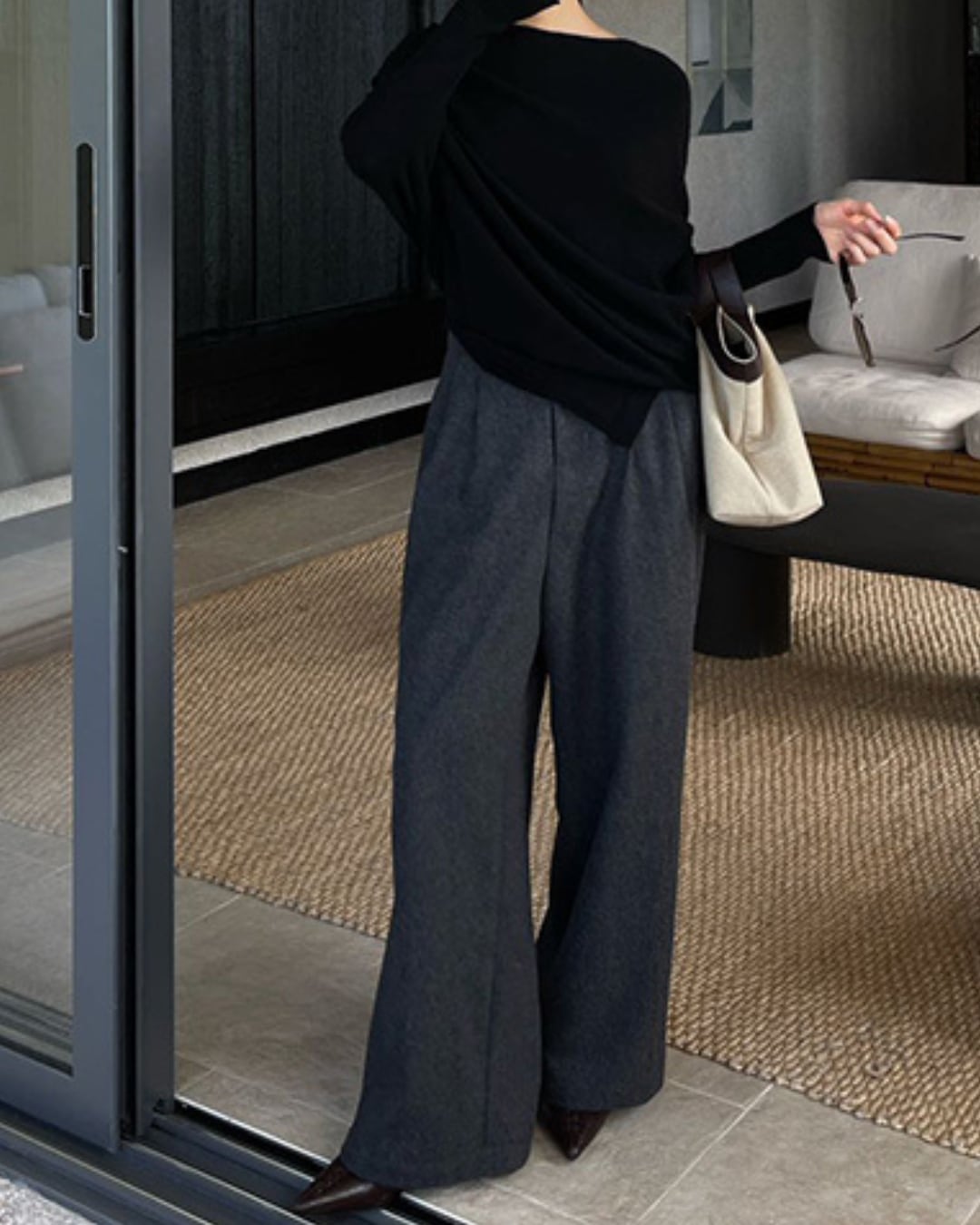 #ワイドパンツ #ウール混 #グレーコーデ #通勤パンツ #美脚シルエット #秋冬パンツ