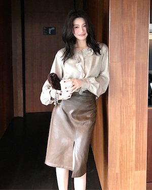 #フェイクレザースカート #タイトスカート #アースカラー #ミディ丈 #ベルト付き #大人カジュアル
