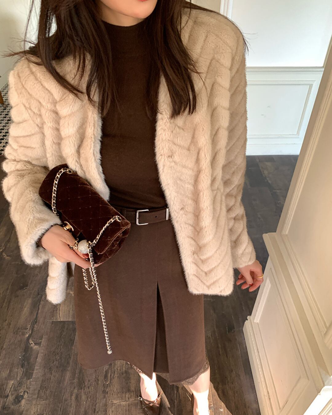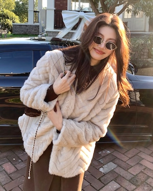 #フェイクファー #ファージャケット #Vネックアウター #ベージュアウター #体型カバー #秋冬コーデ