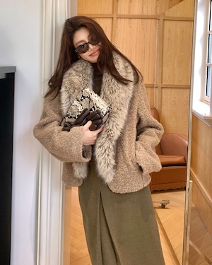 オーバーサイズウールファーコート A25315