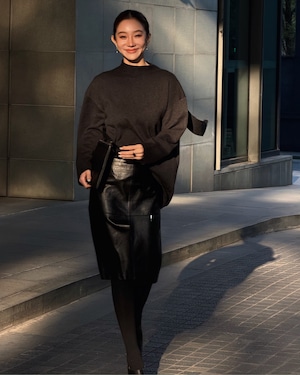 #ネクタイデザイン #ニットトップス #長袖ニット #モードコーデ #ブラックコーデ #大人カジュアル
