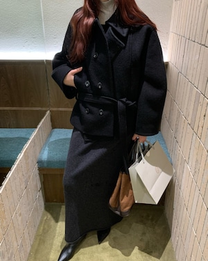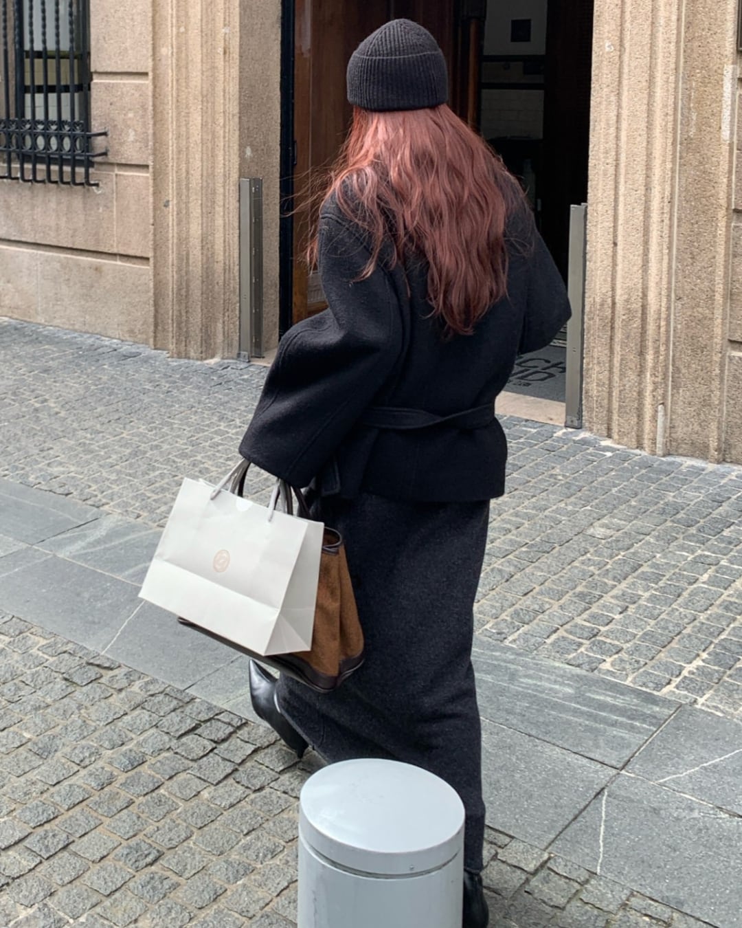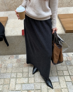 #ウールスカート #ストレートシルエット #ミディ丈 #通勤スタイル #秋冬ボトムス #ダークグレー