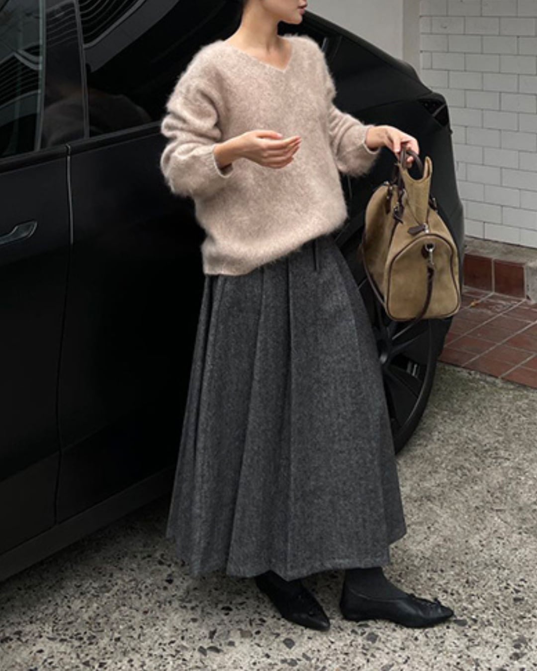 #シャギーニット #Vネック #ふんわりニット #カーキベージュ #長袖ニット #冬コーデ