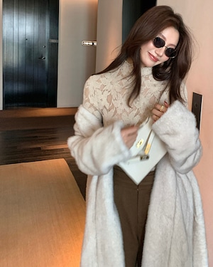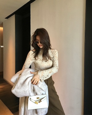 #レーストップス #フレアスリーブ #ハイネック #シアートップス #透け感コーデ #レイヤード