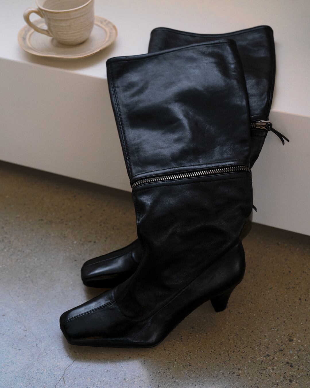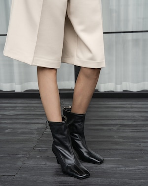 シンプルなスクエアトゥ×美しいツヤ感が映えるレザーブーツ。履き口のジップディテールは開けて折り返すことでローミドル丈にも変化する3WAY仕様。高めのヒールで脚を美しく見せつつ、安定感ある太めのヒールで歩きやすさも◎シンプルながら個性をプラスしてくれる、1足持っておきたい優秀ブーツです。