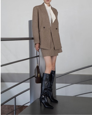 #ロングブーツ #レザーブーツ #ポインテッドトゥ #ベルトデザイン #ボルドーコーデ #細ヒール #高見えブーツ