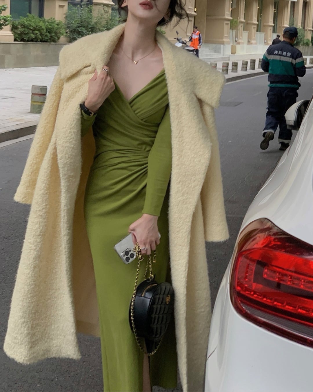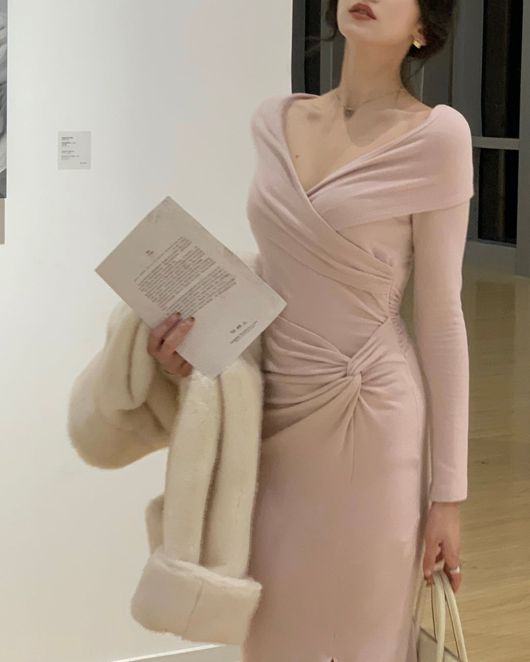 #クロスデザイン #ギャザーワンピース #ミディ丈 #スリット入り #美シルエット #秋冬コーデ