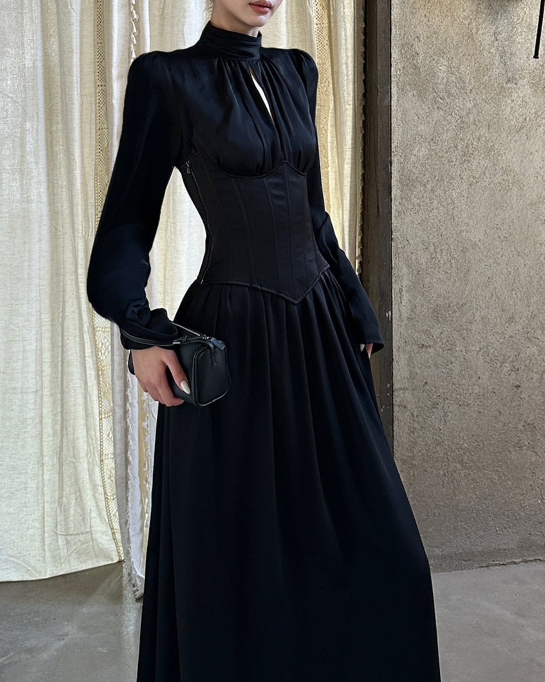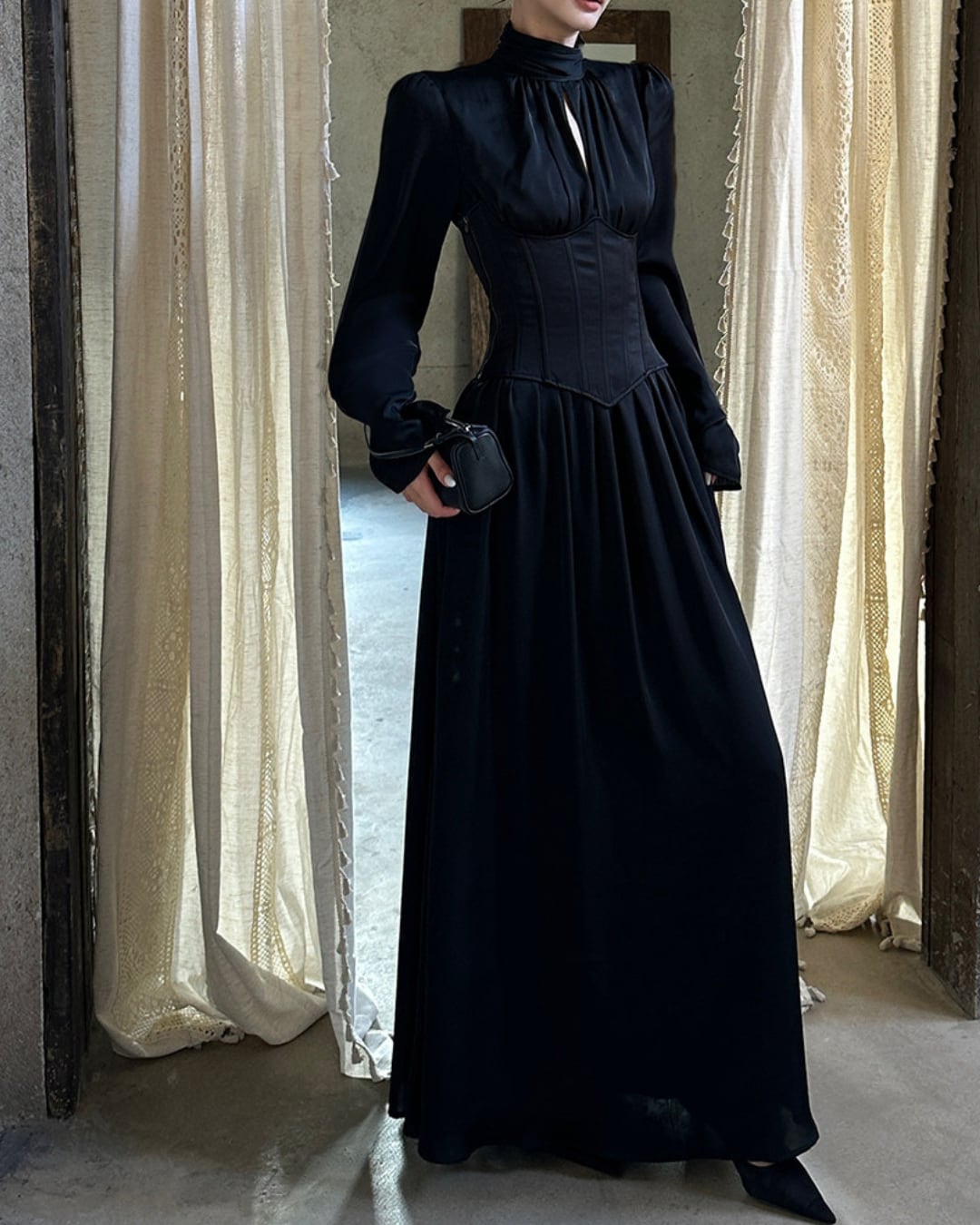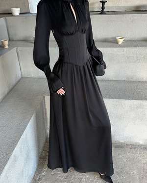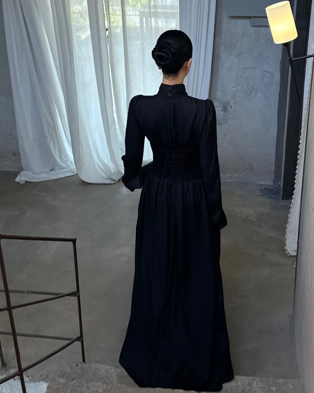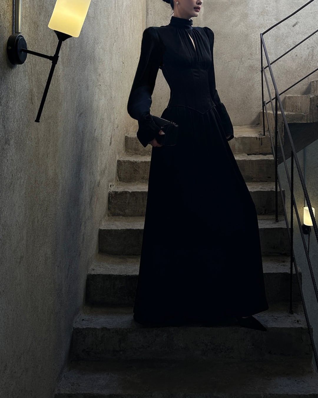 #クラシカル #ハイネック #ロングドレス #ブラックワンピース #フォーマルコーデ #レトロムード