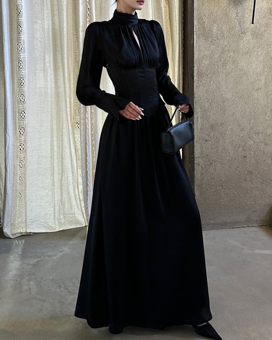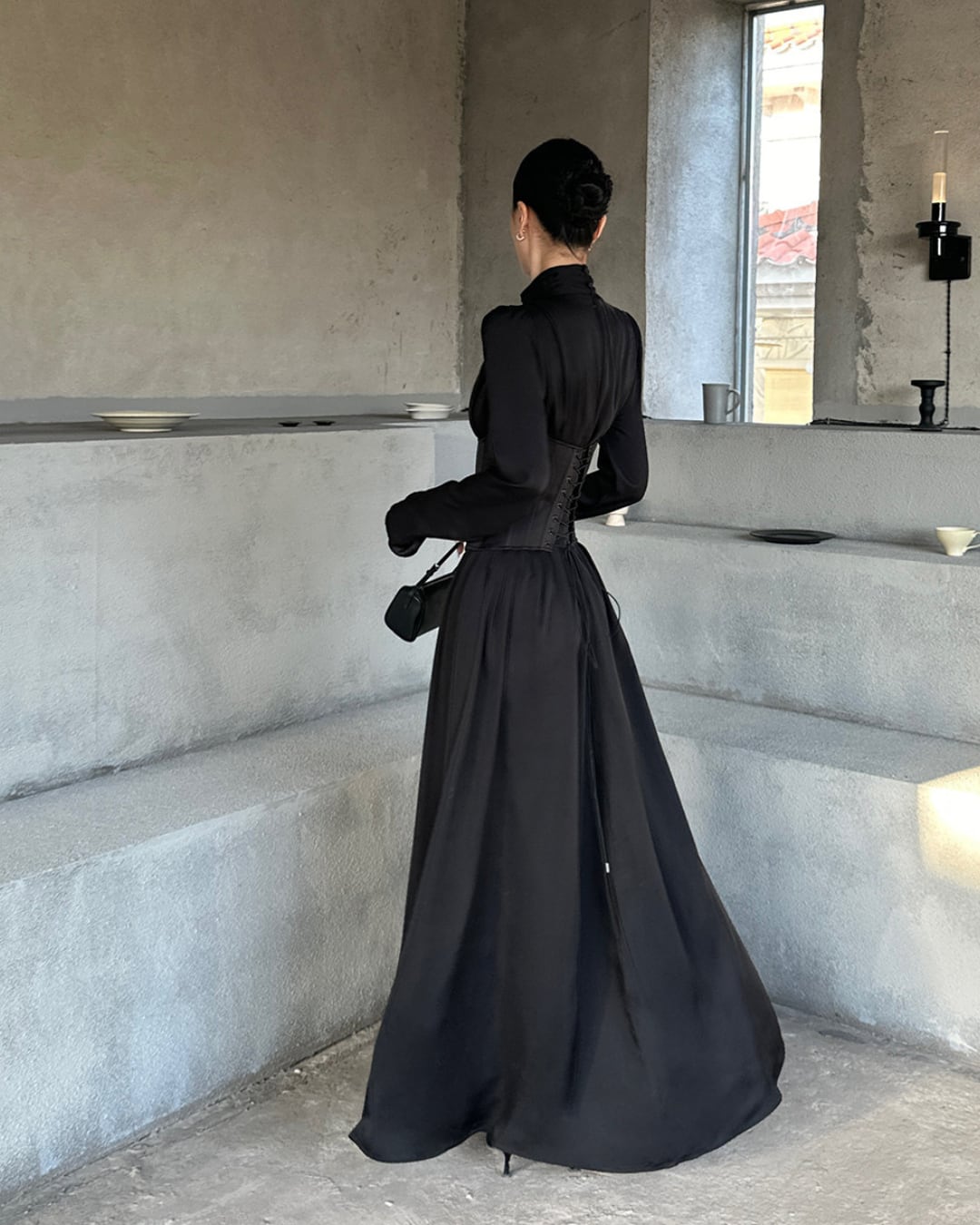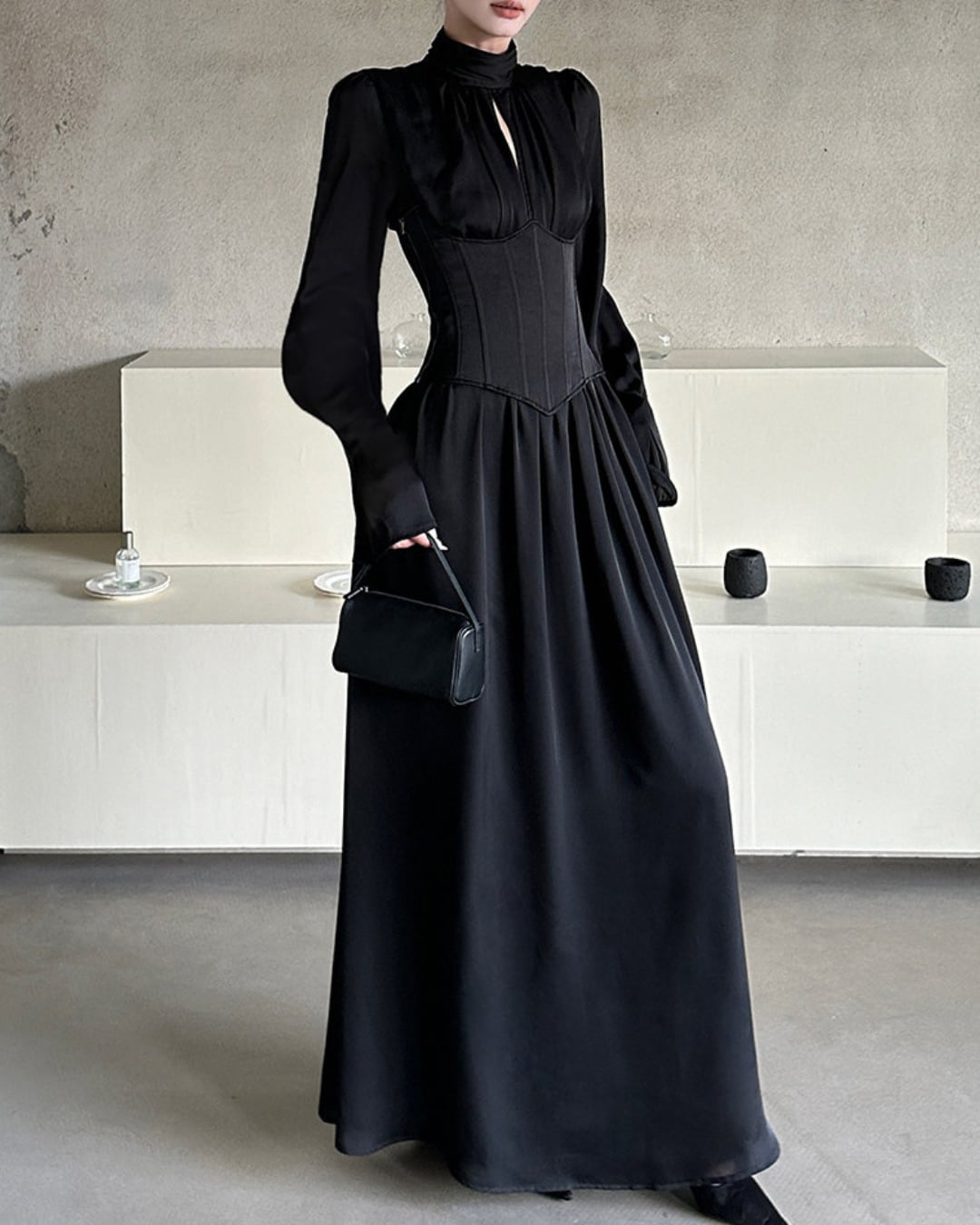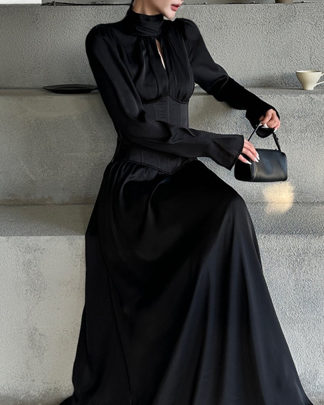 #クラシカル #ハイネック #ロングドレス #ブラックワンピース #フォーマルコーデ #レトロムード
