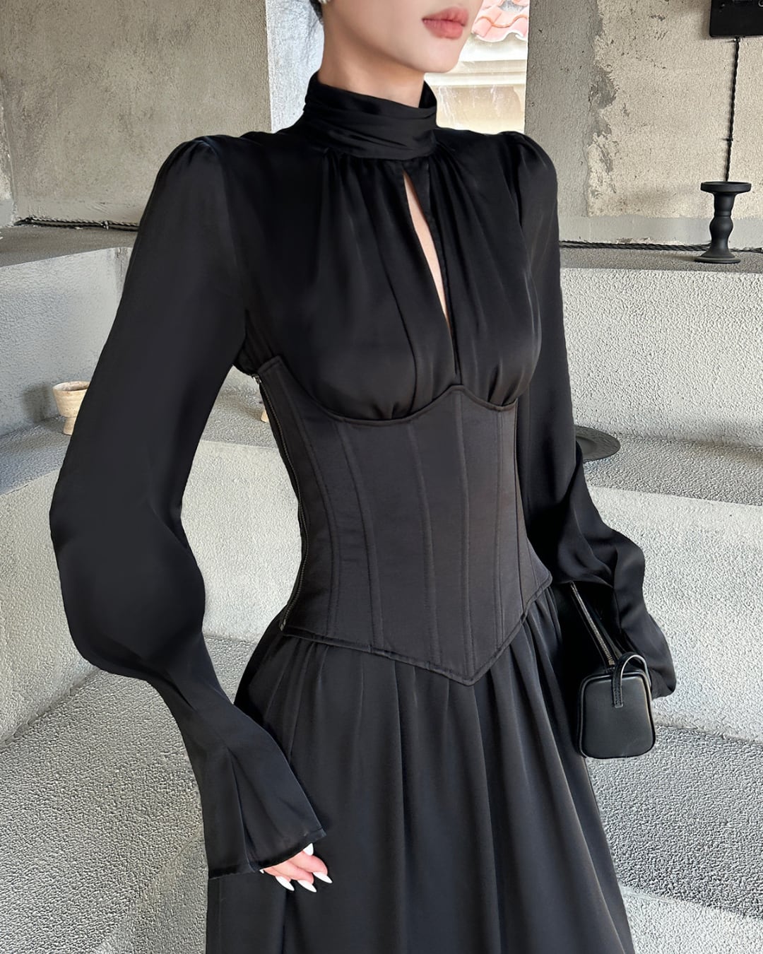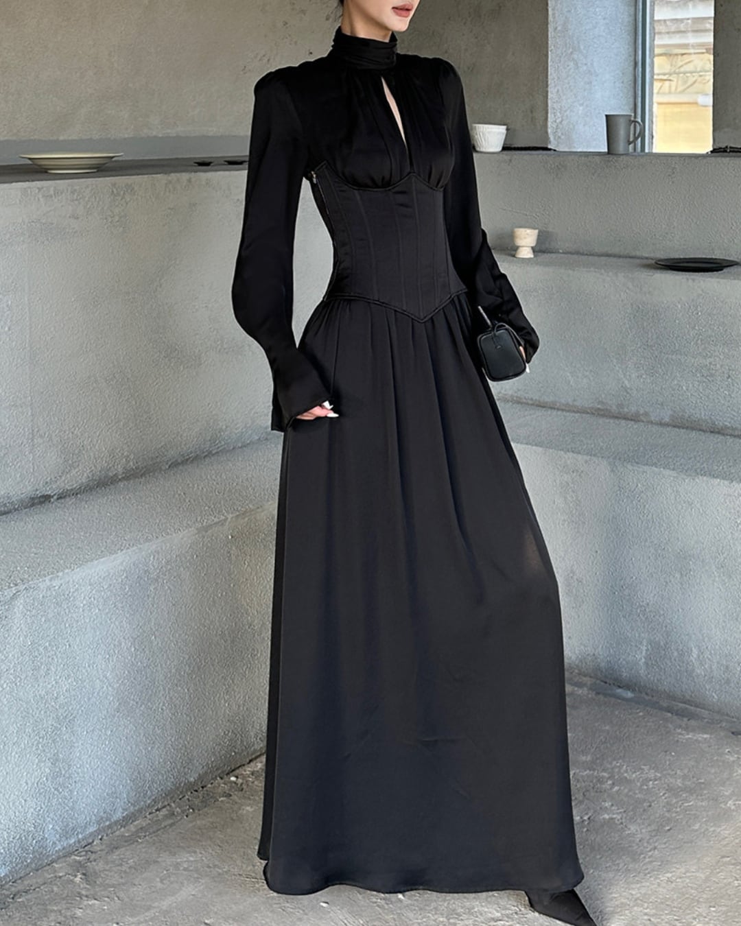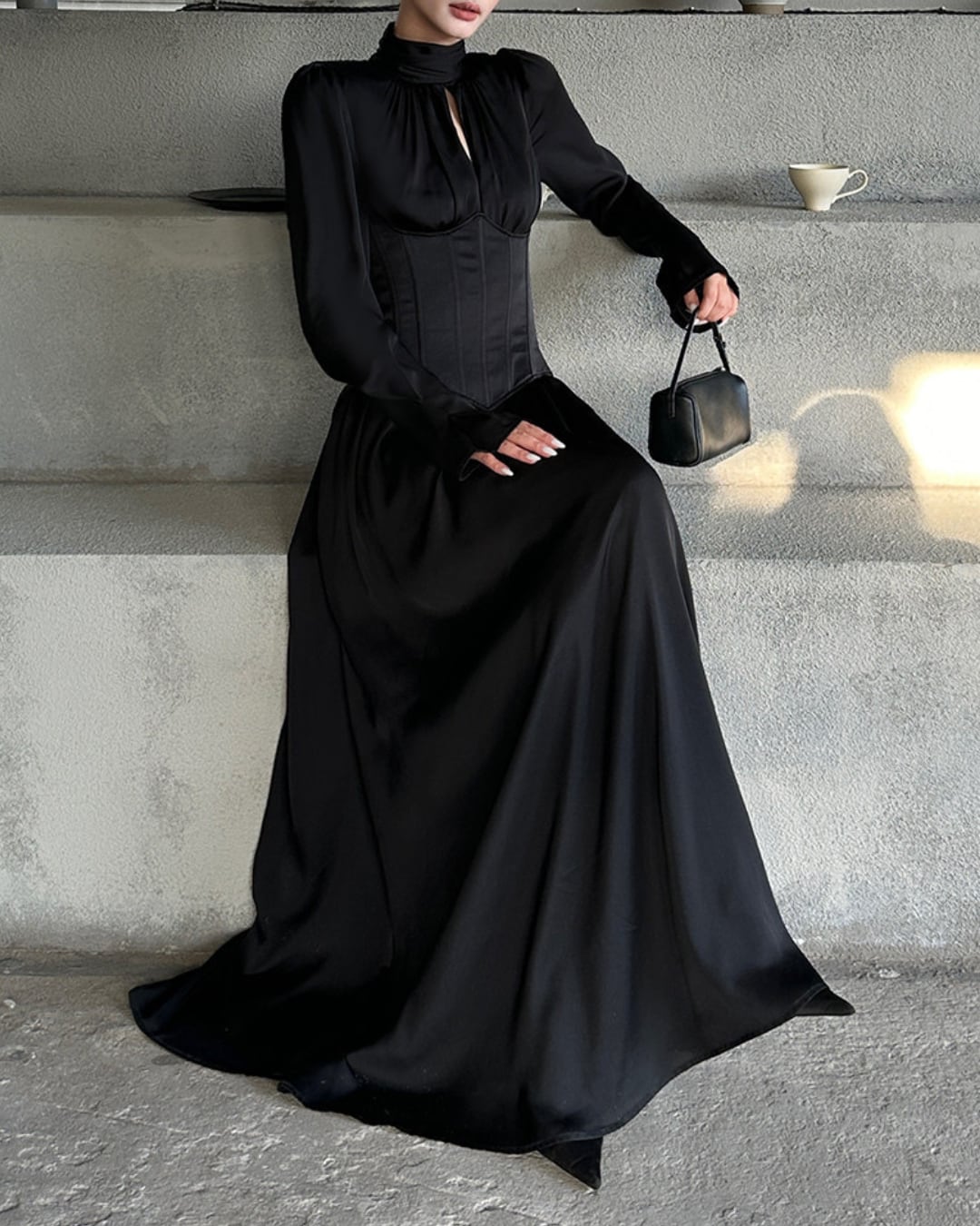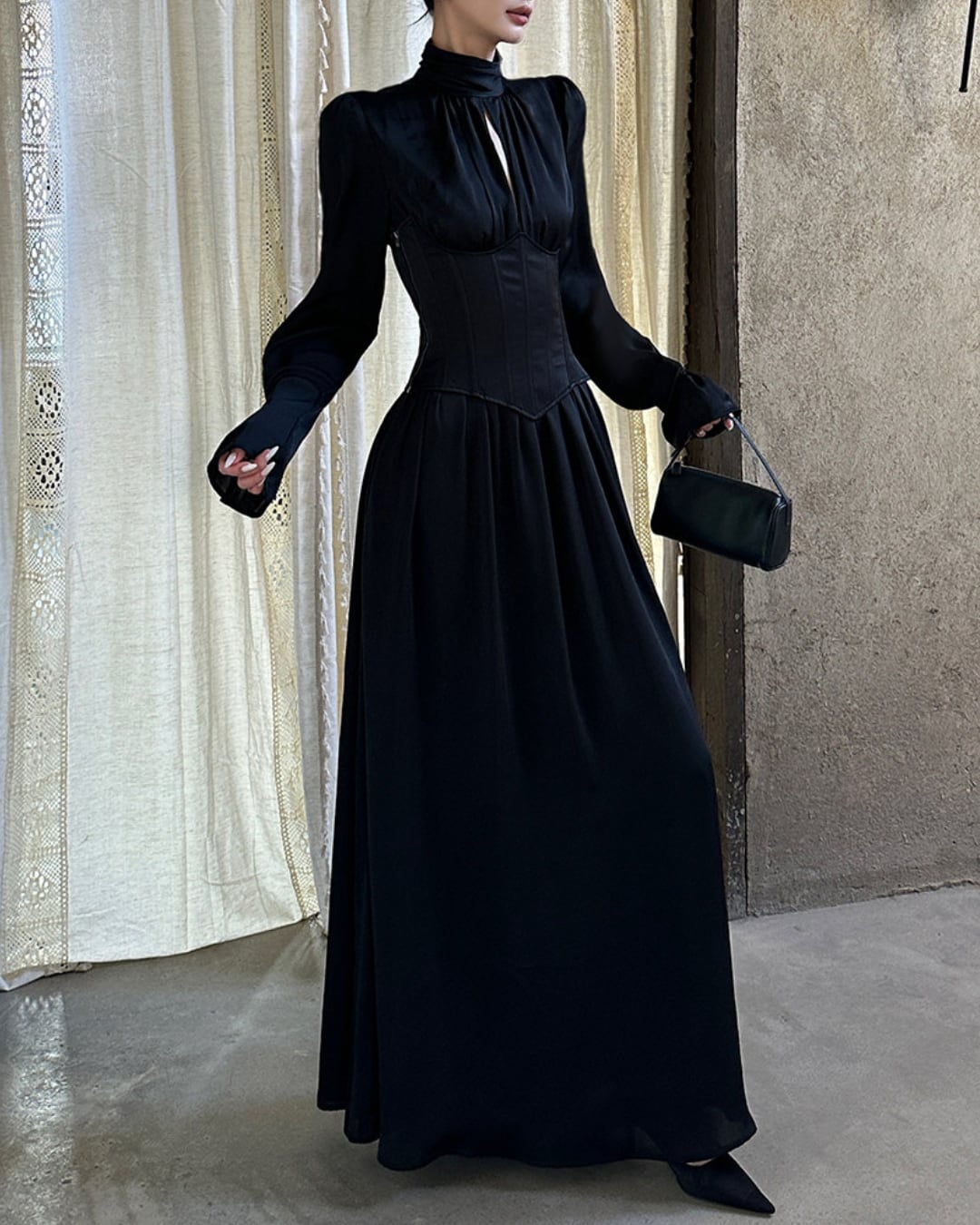 #クラシカル #ハイネック #ロングドレス #ブラックワンピース #フォーマルコーデ #レトロムード