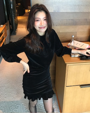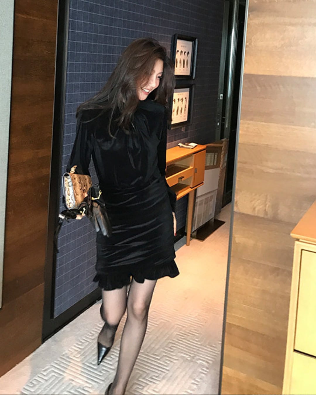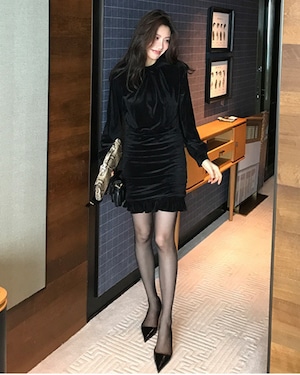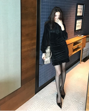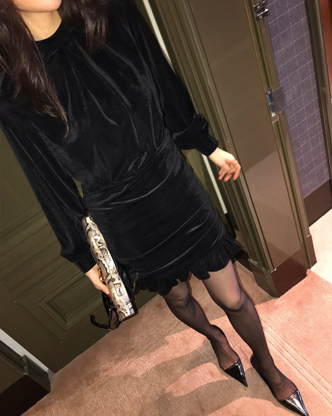 #ベロアワンピース #ドレープデザイン #タイトシルエット #ミニドレス #ブラックコーデ #華やかスタイル