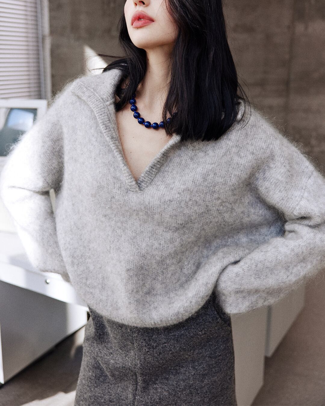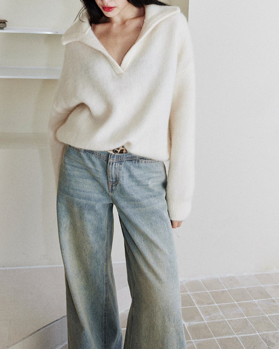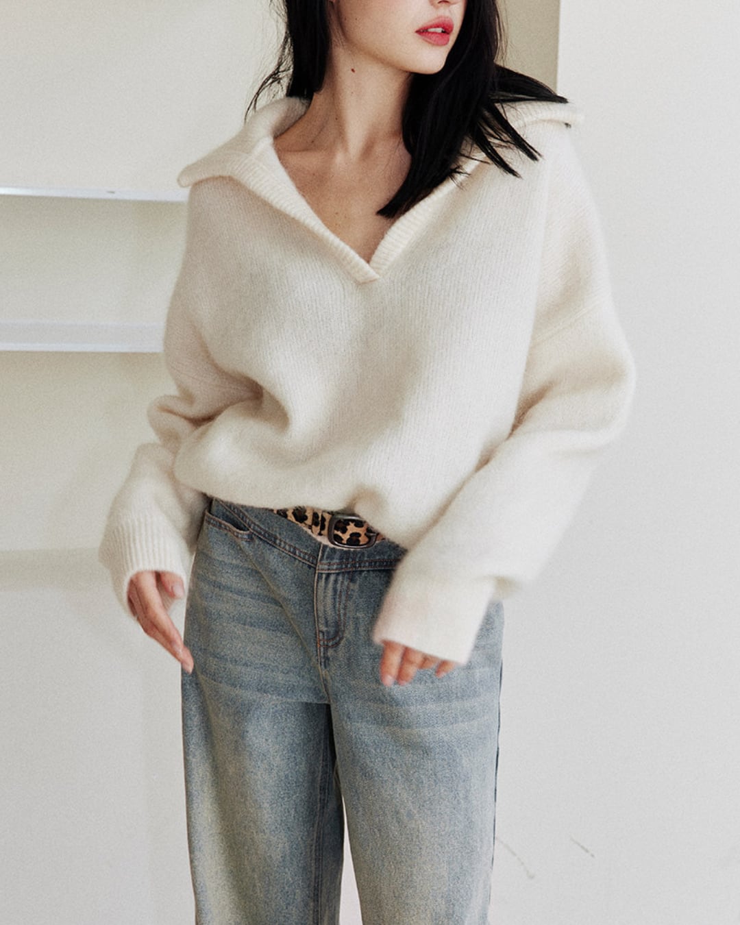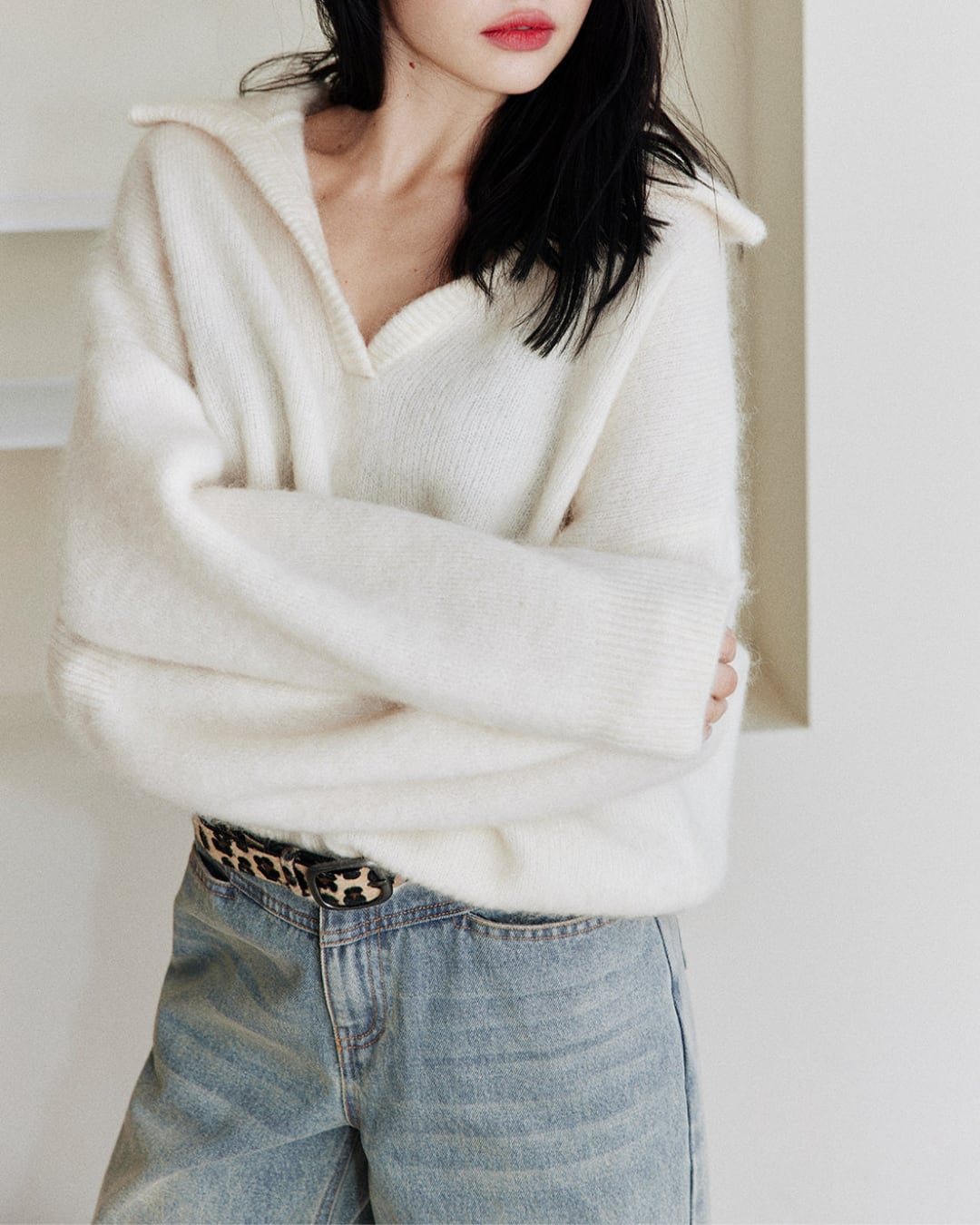 #ルーズニット #ワイドカラー #モヘア混 #レイヤードコーデ #ナチュラルカラー #韓国ファッション