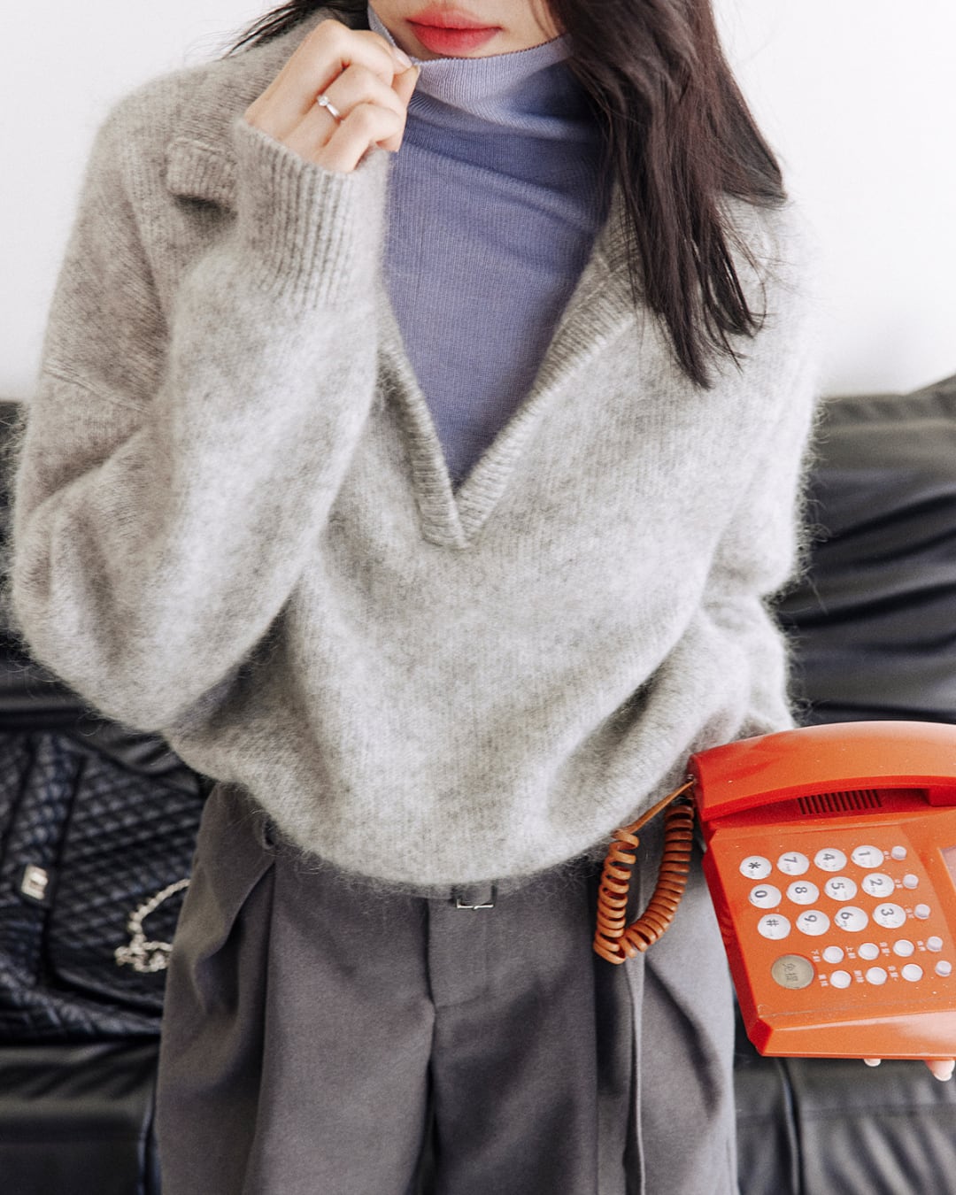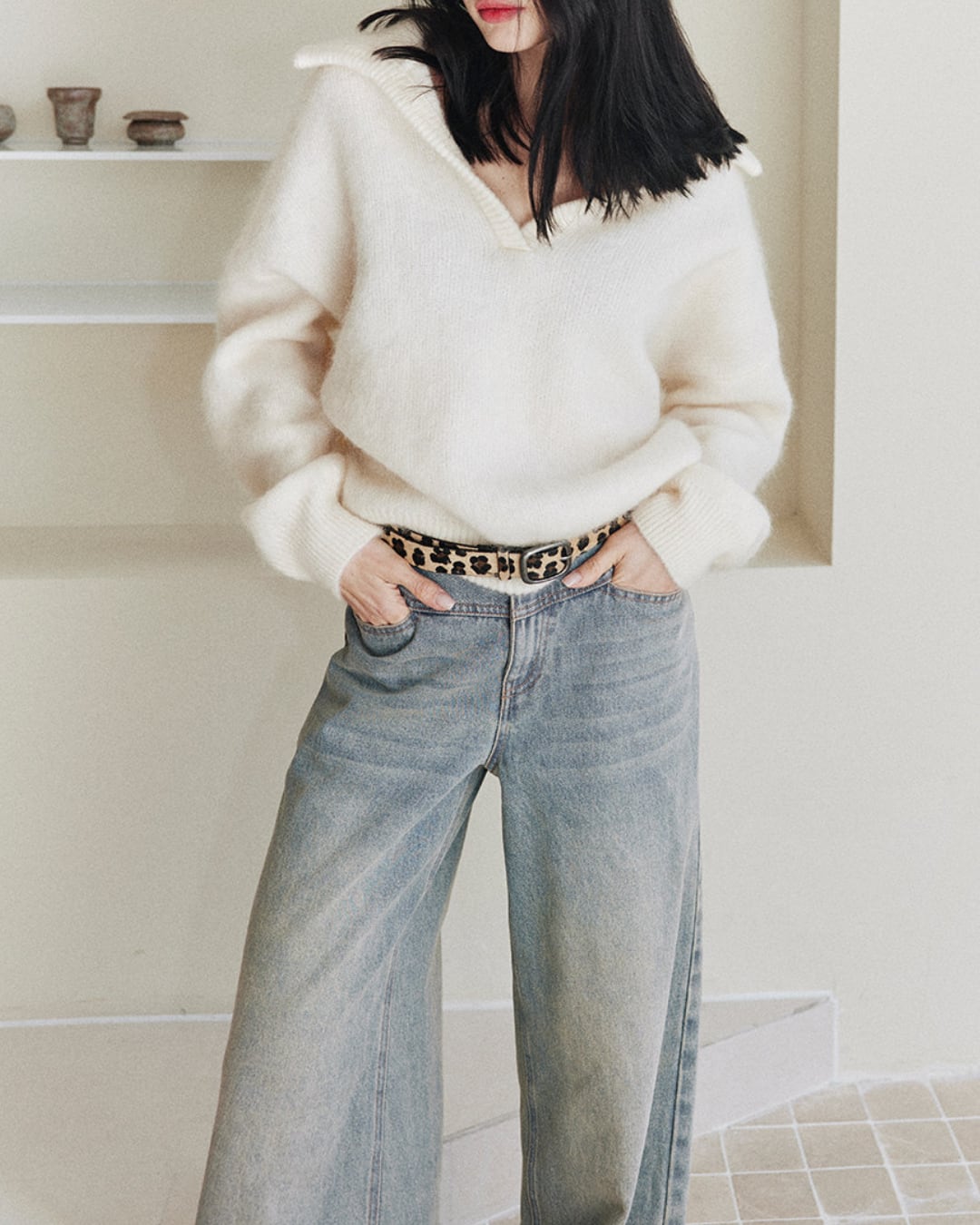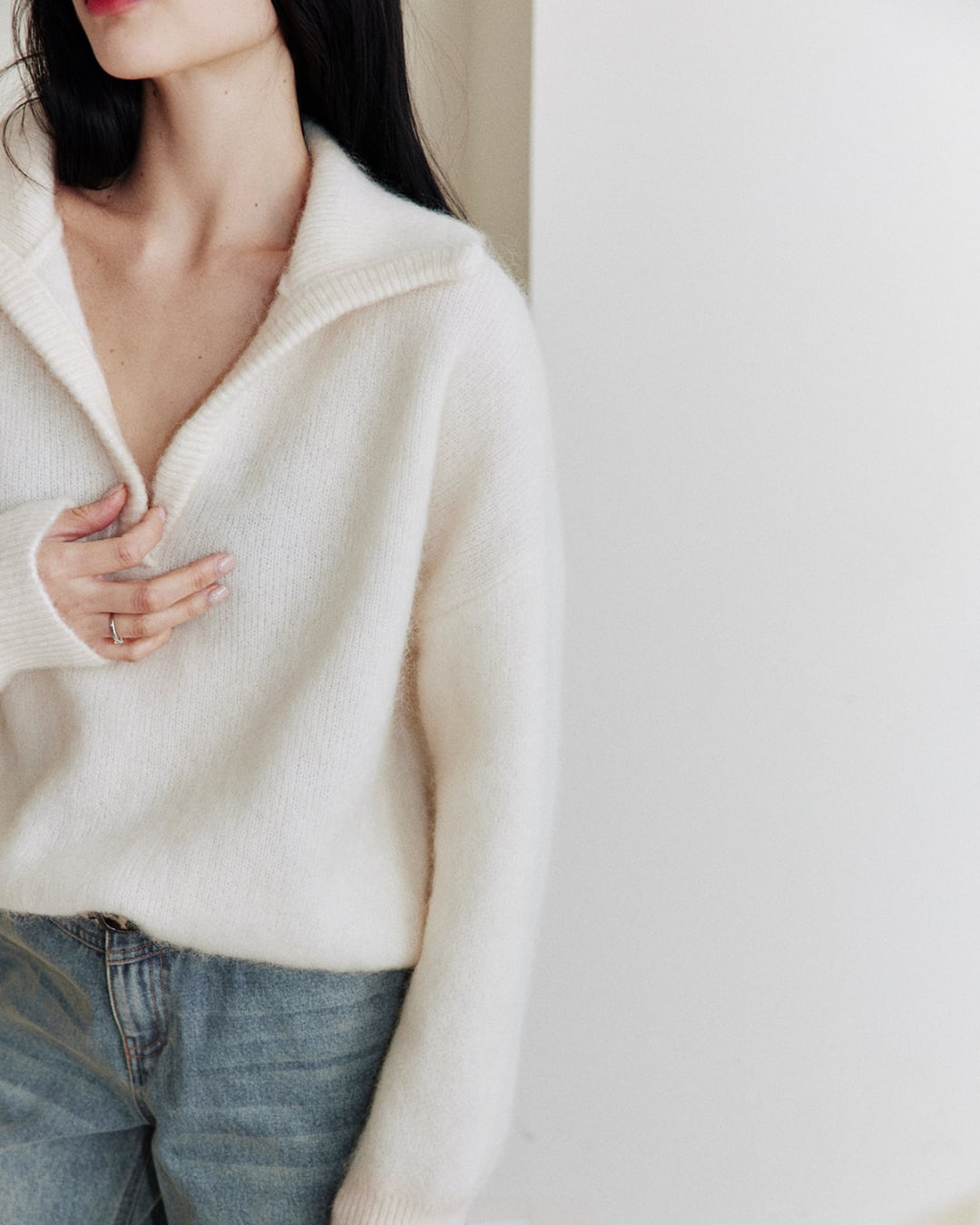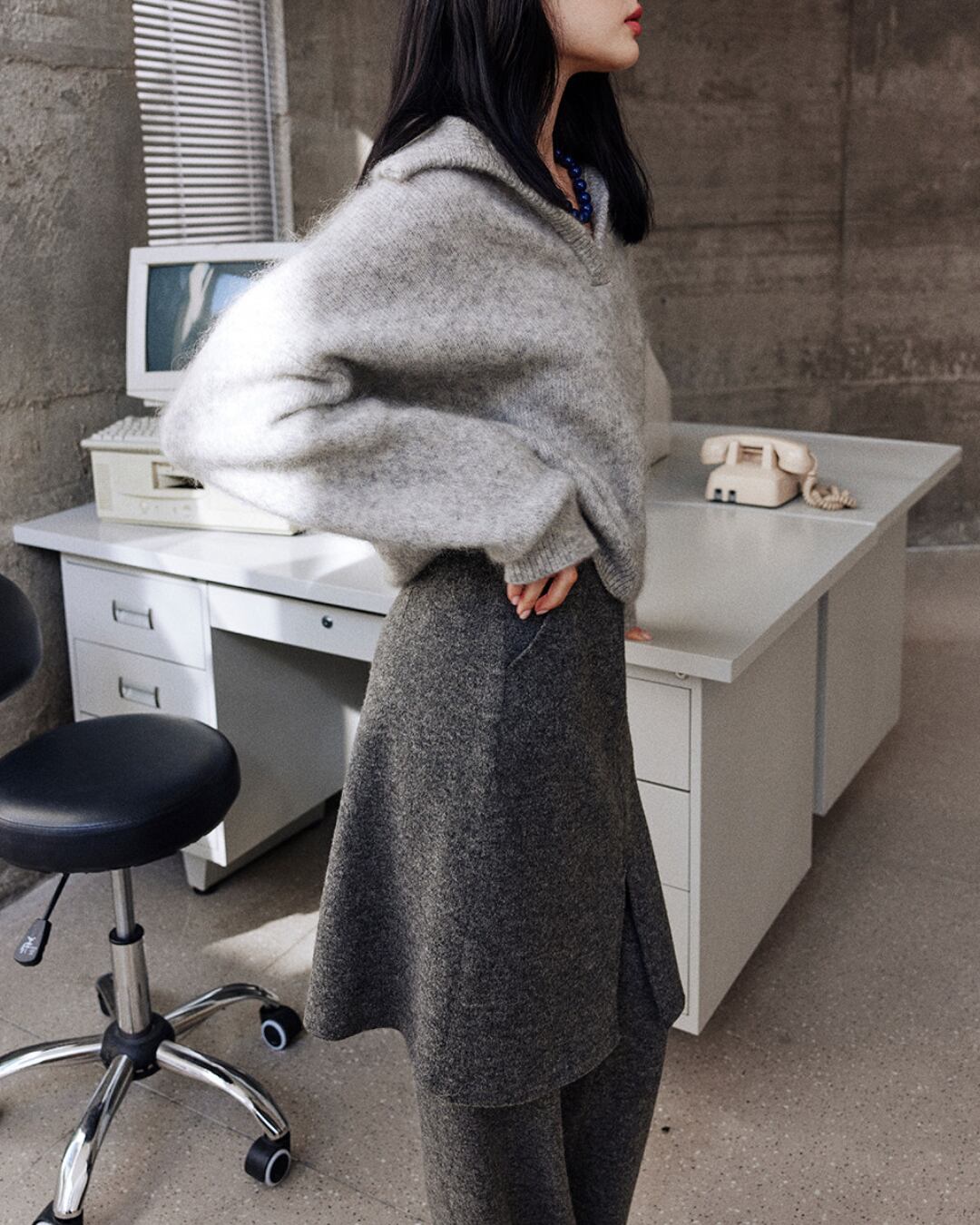 #ルーズニット #ワイドカラー #モヘア混 #レイヤードコーデ #ナチュラルカラー #韓国ファッション