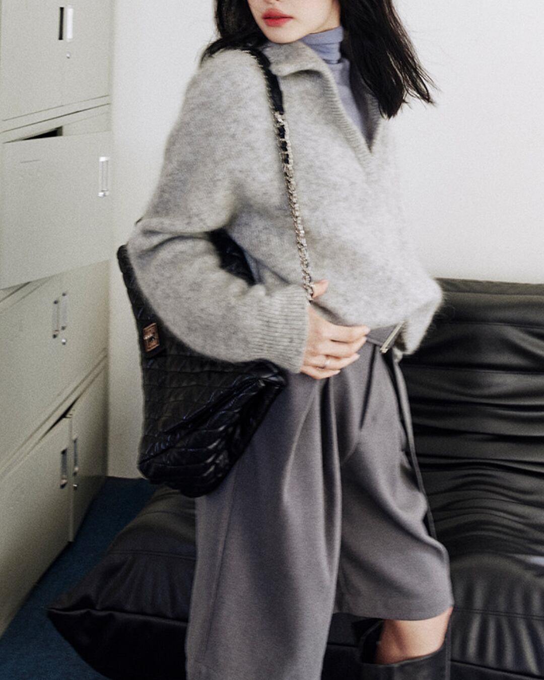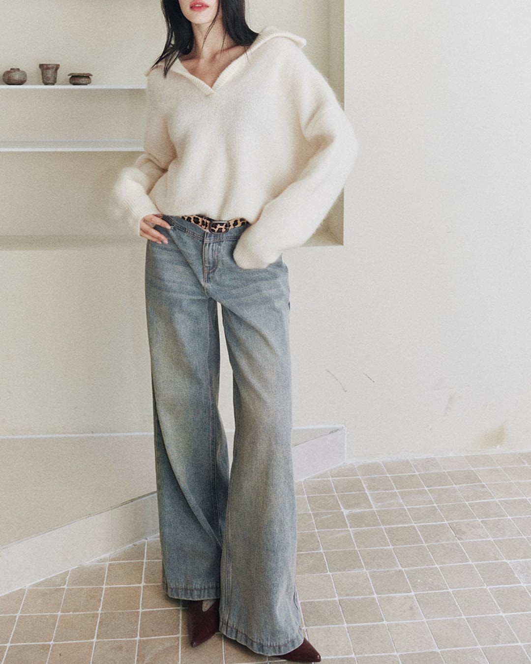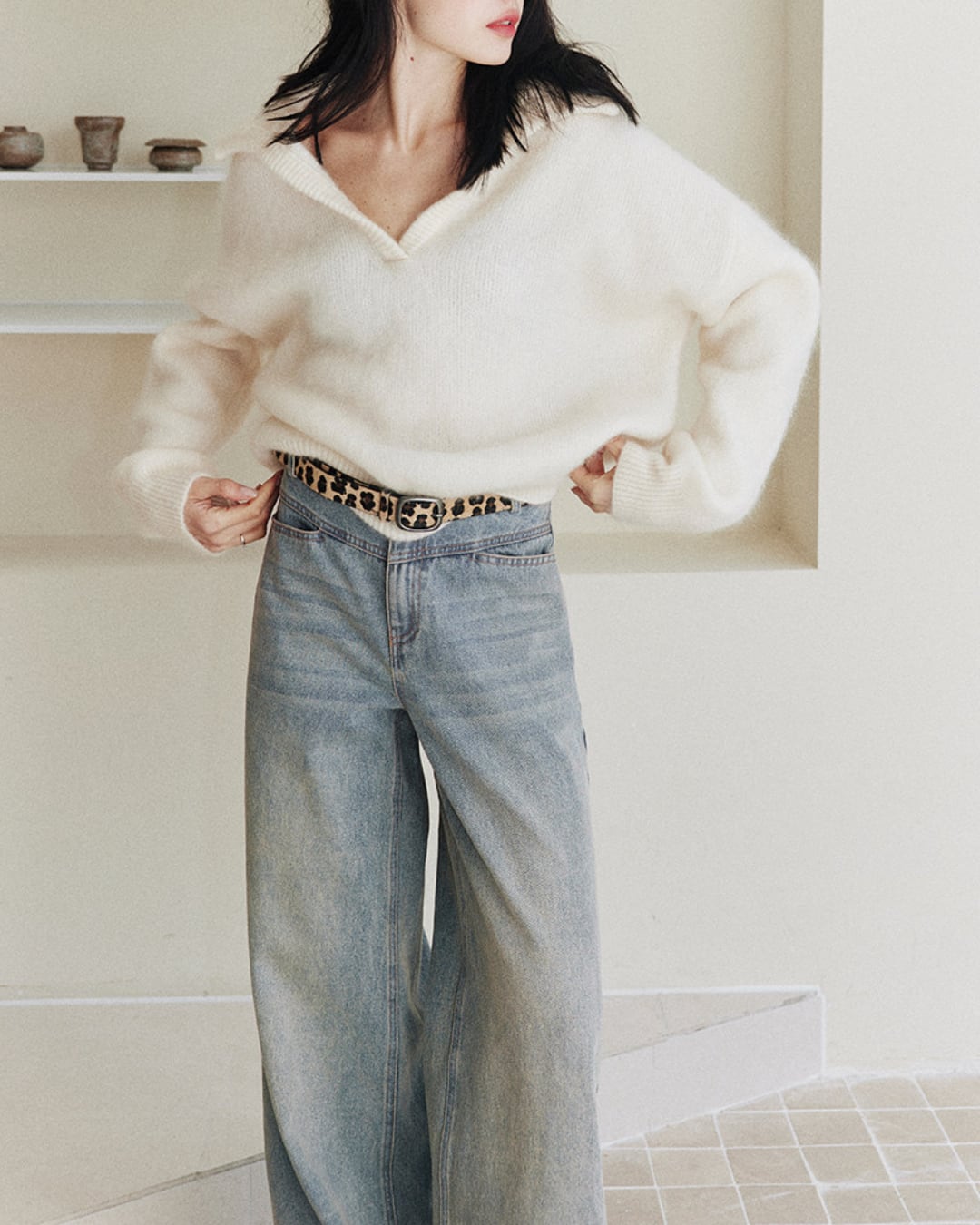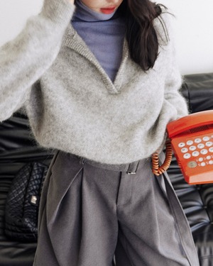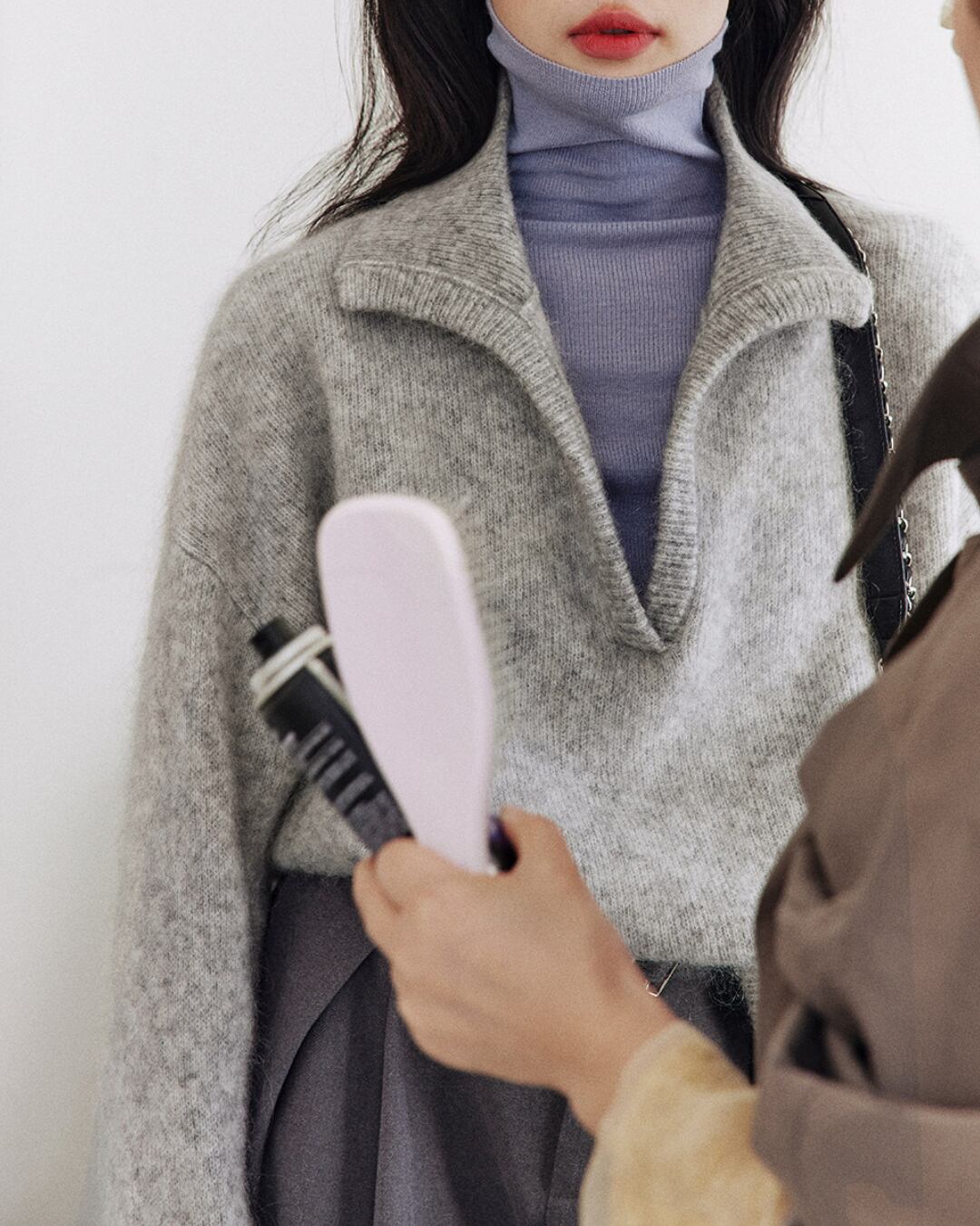 #ルーズニット #ワイドカラー #モヘア混 #レイヤードコーデ #ナチュラルカラー #韓国ファッション