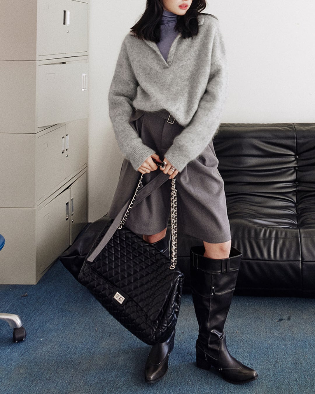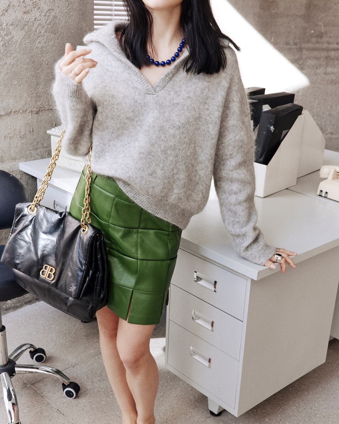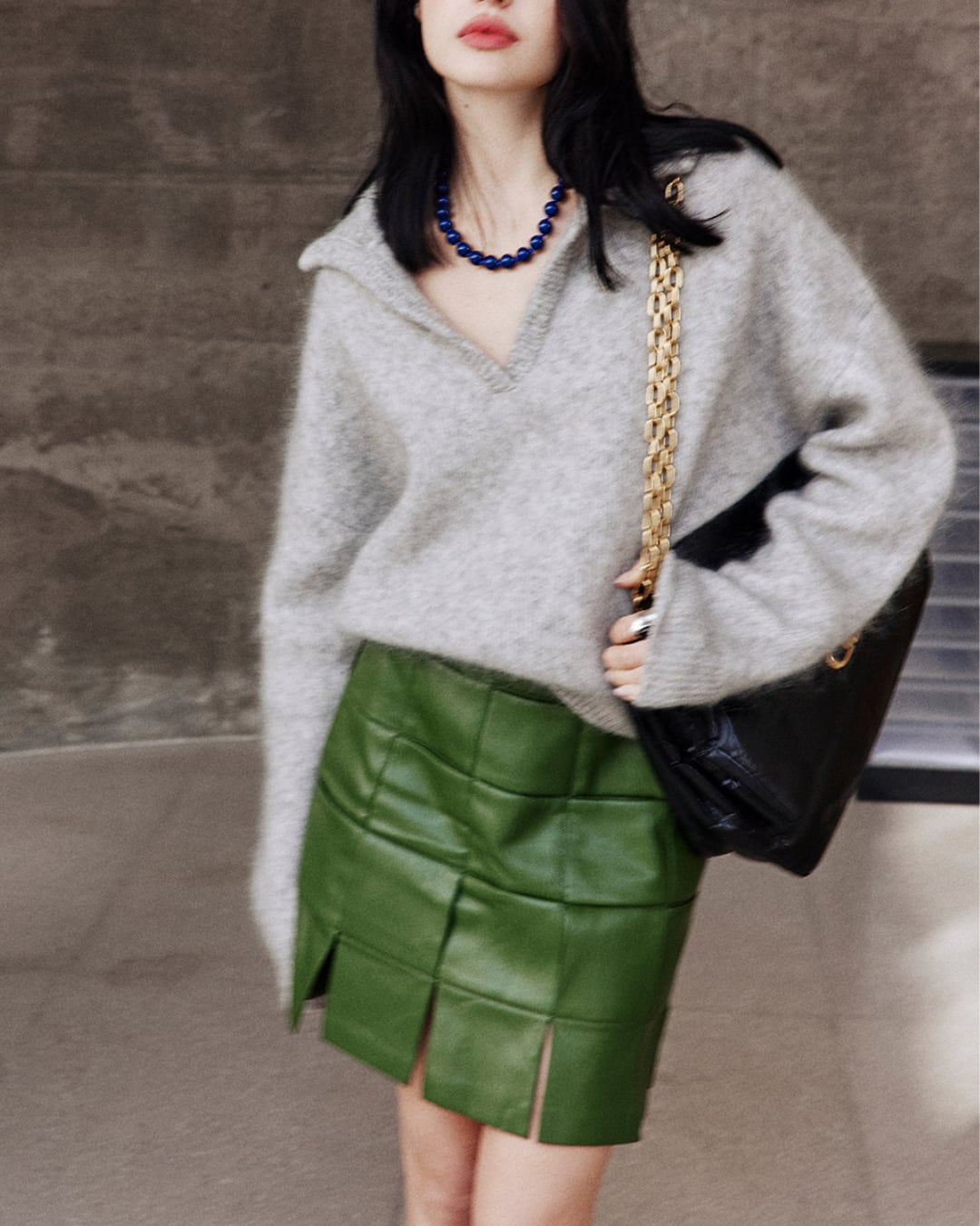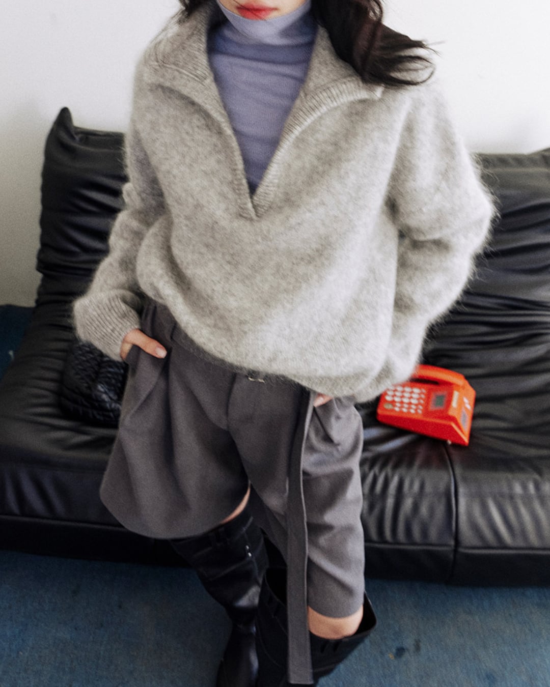 #ルーズニット #ワイドカラー #モヘア混 #レイヤードコーデ #ナチュラルカラー #韓国ファッション