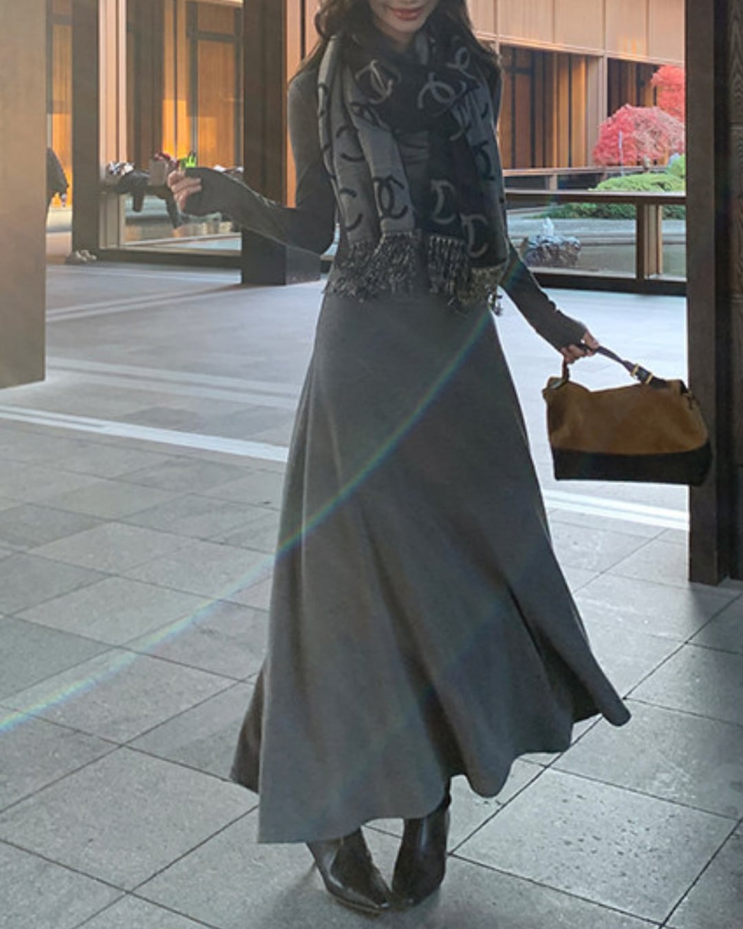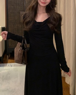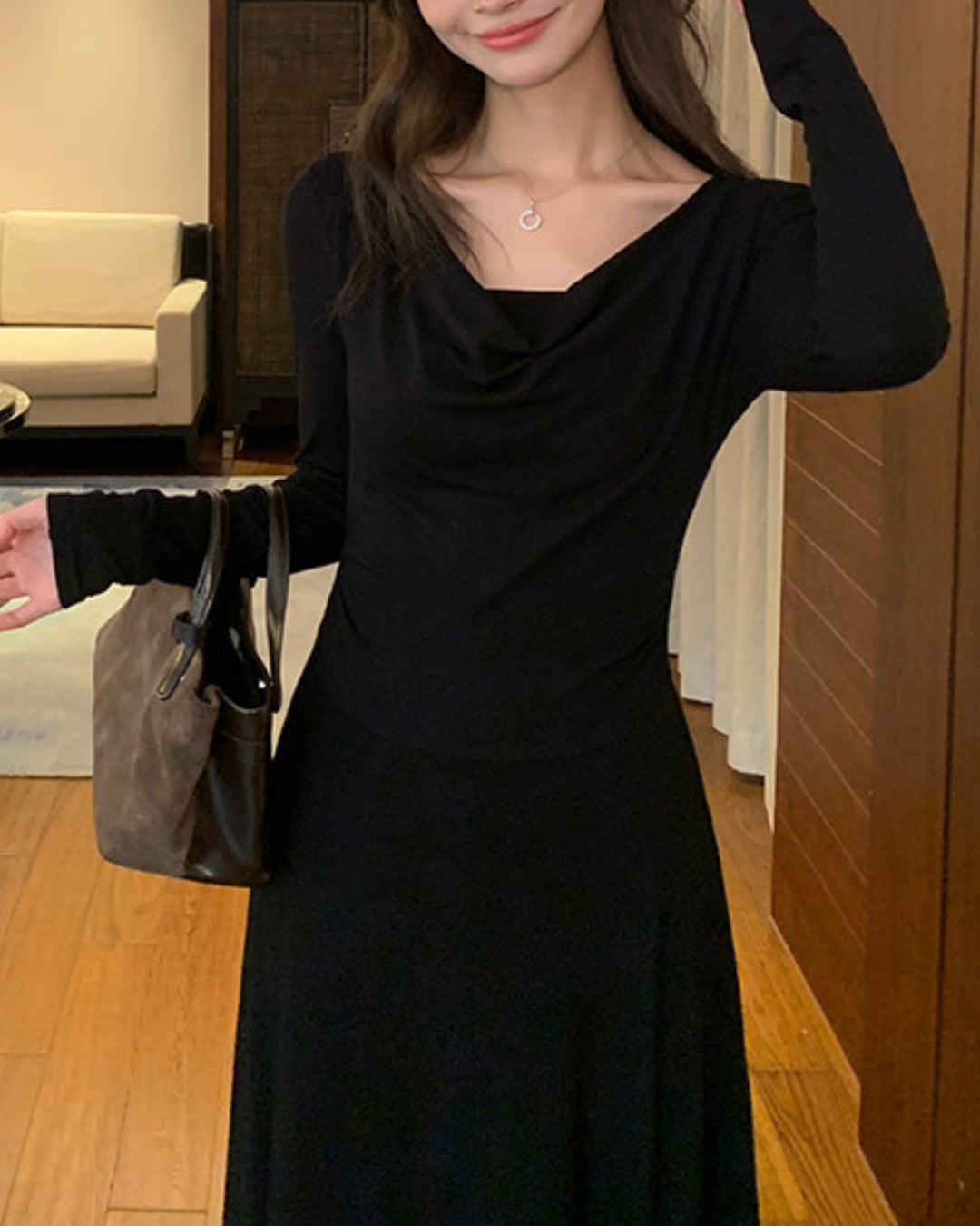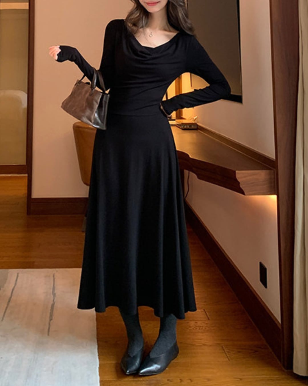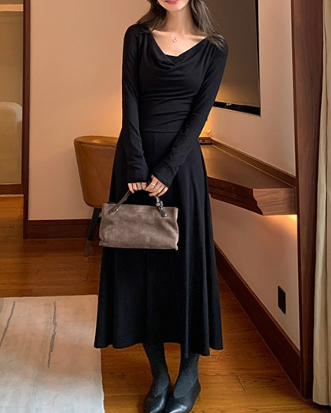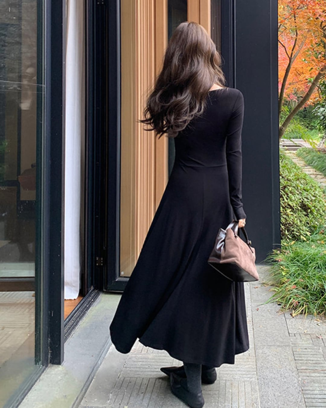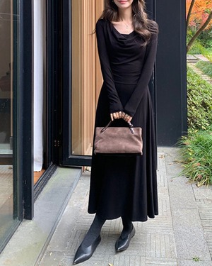 #フィットアンドフレア #ロングワンピ #スタイルアップ #シンプルコーデ #エレガントワンピ #体型カバー