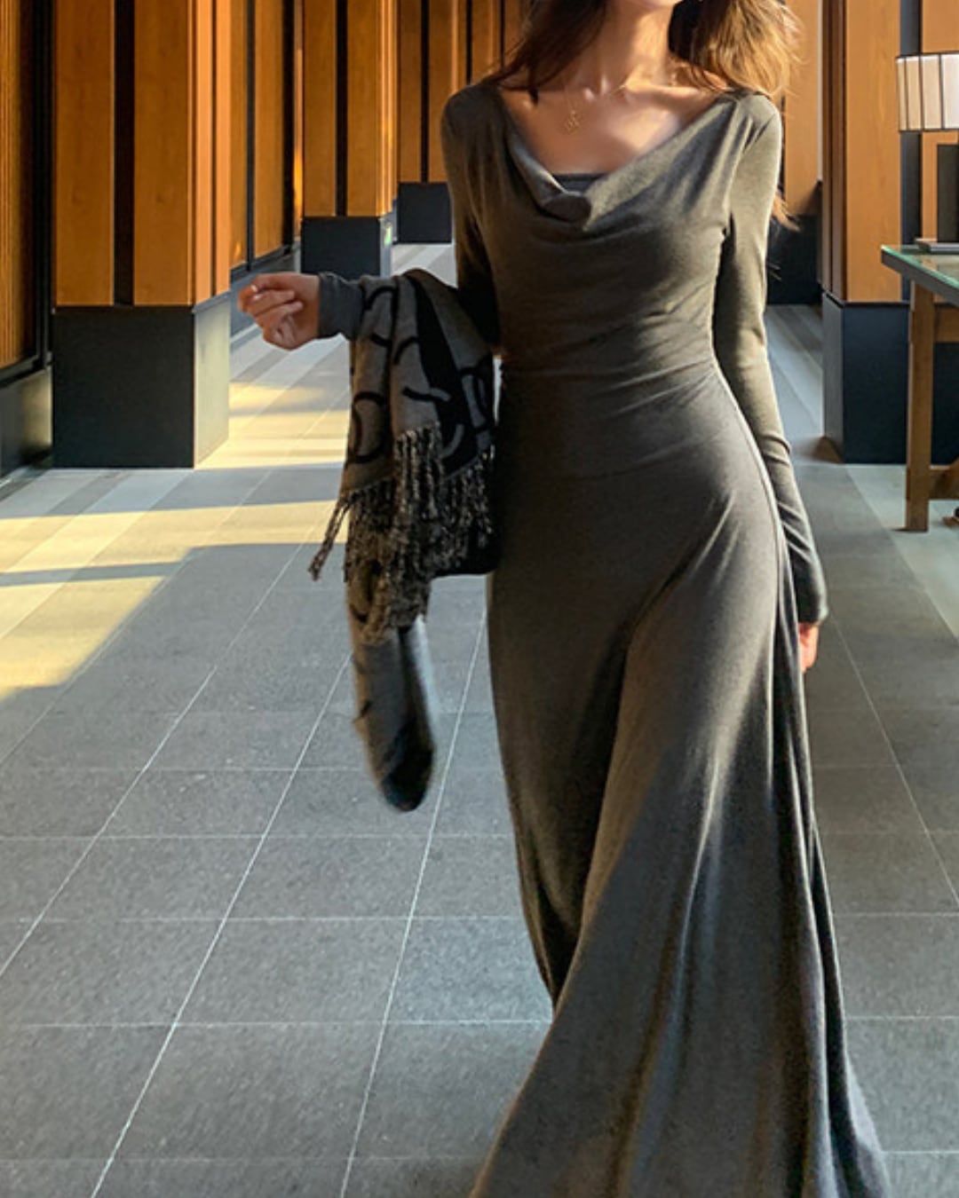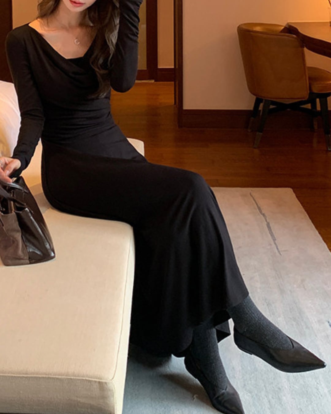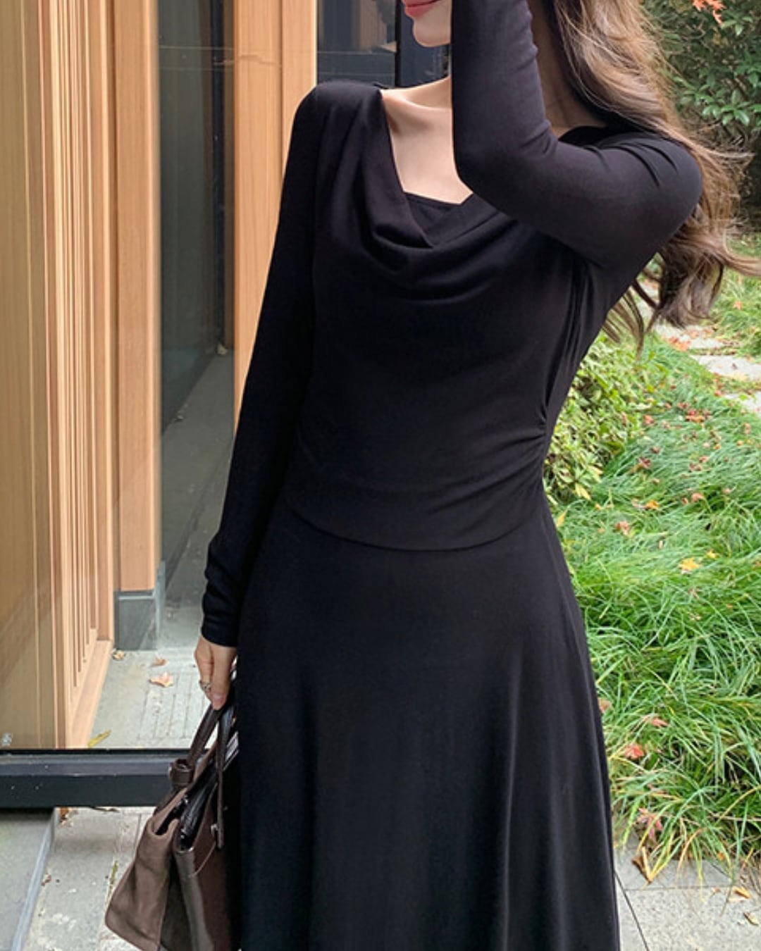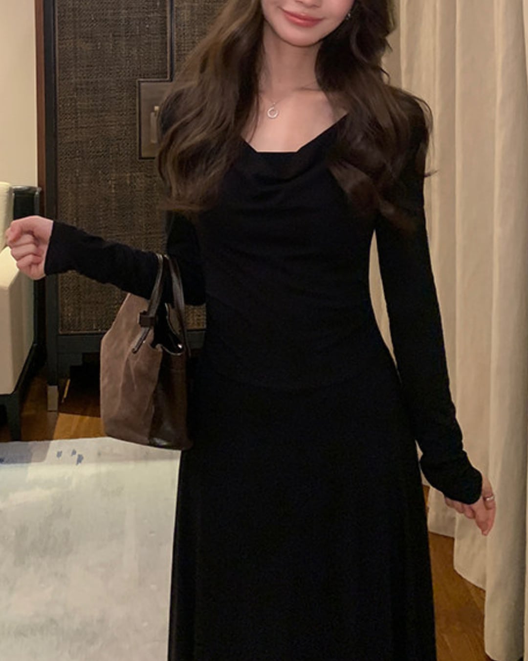 #フィットアンドフレア #ロングワンピ #スタイルアップ #シンプルコーデ #エレガントワンピ #体型カバー
