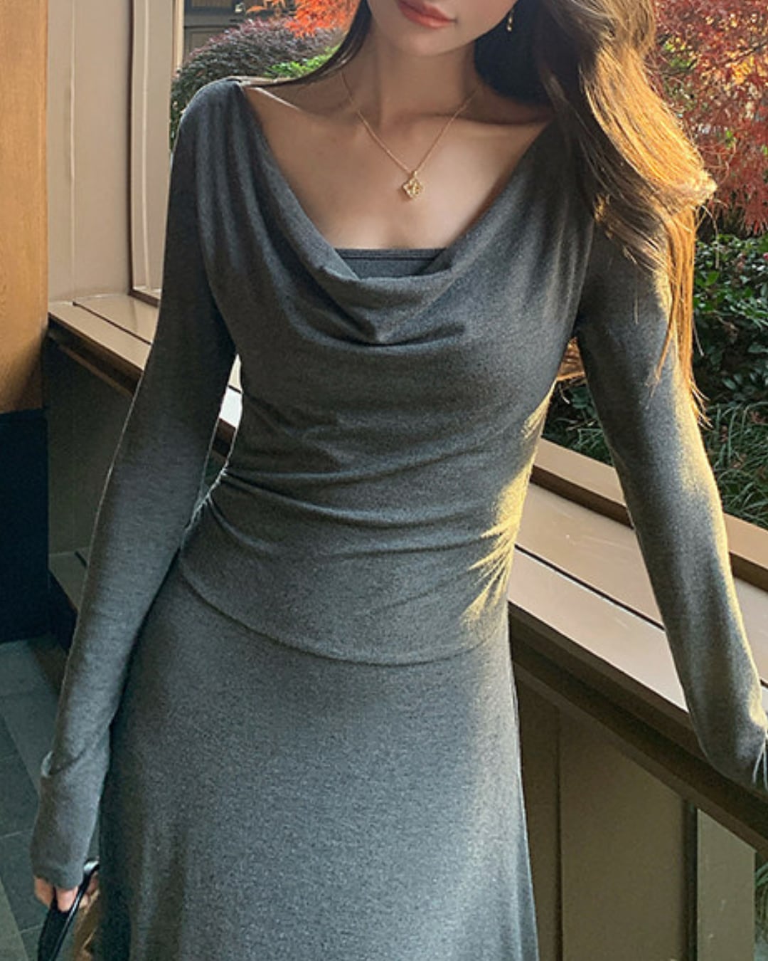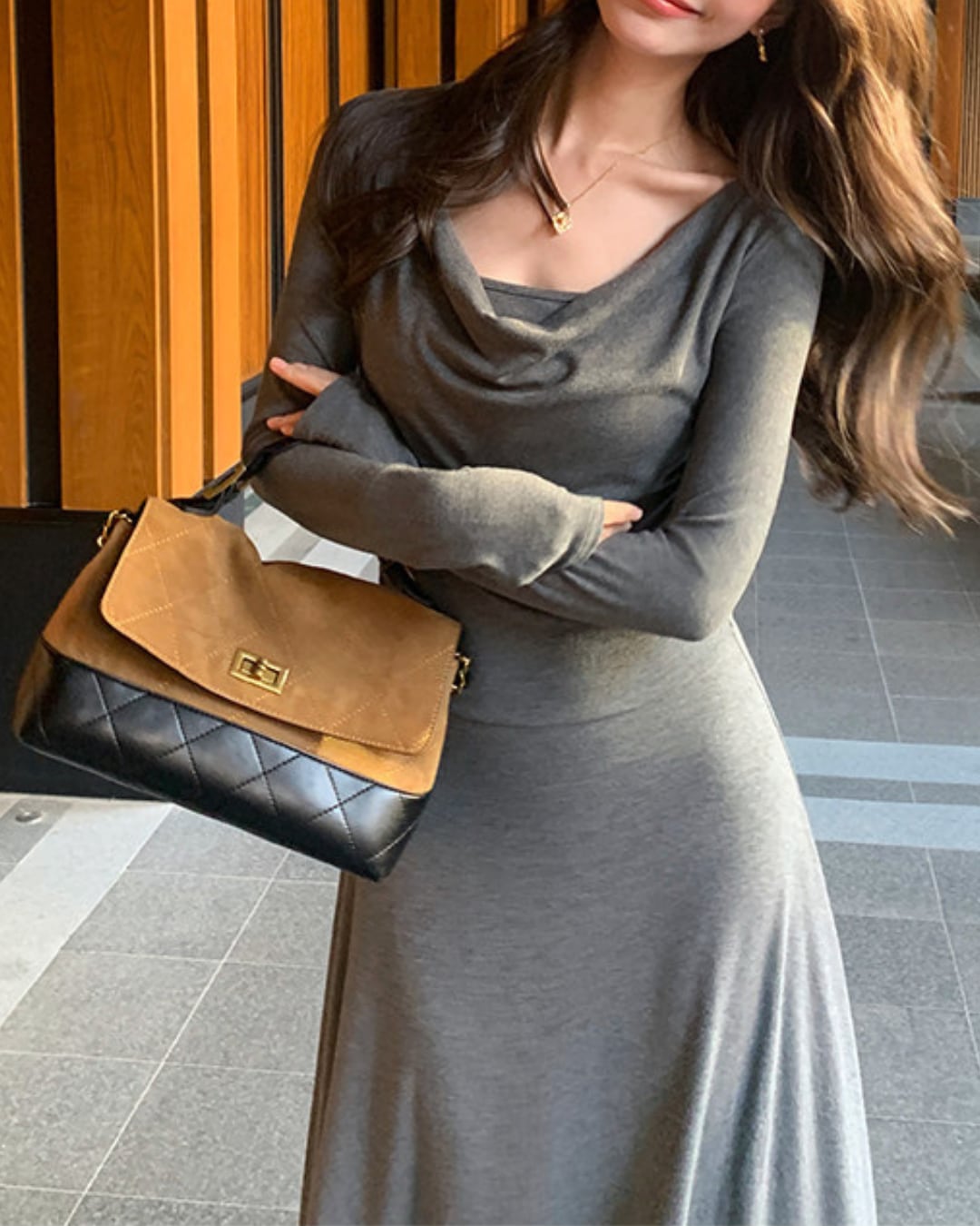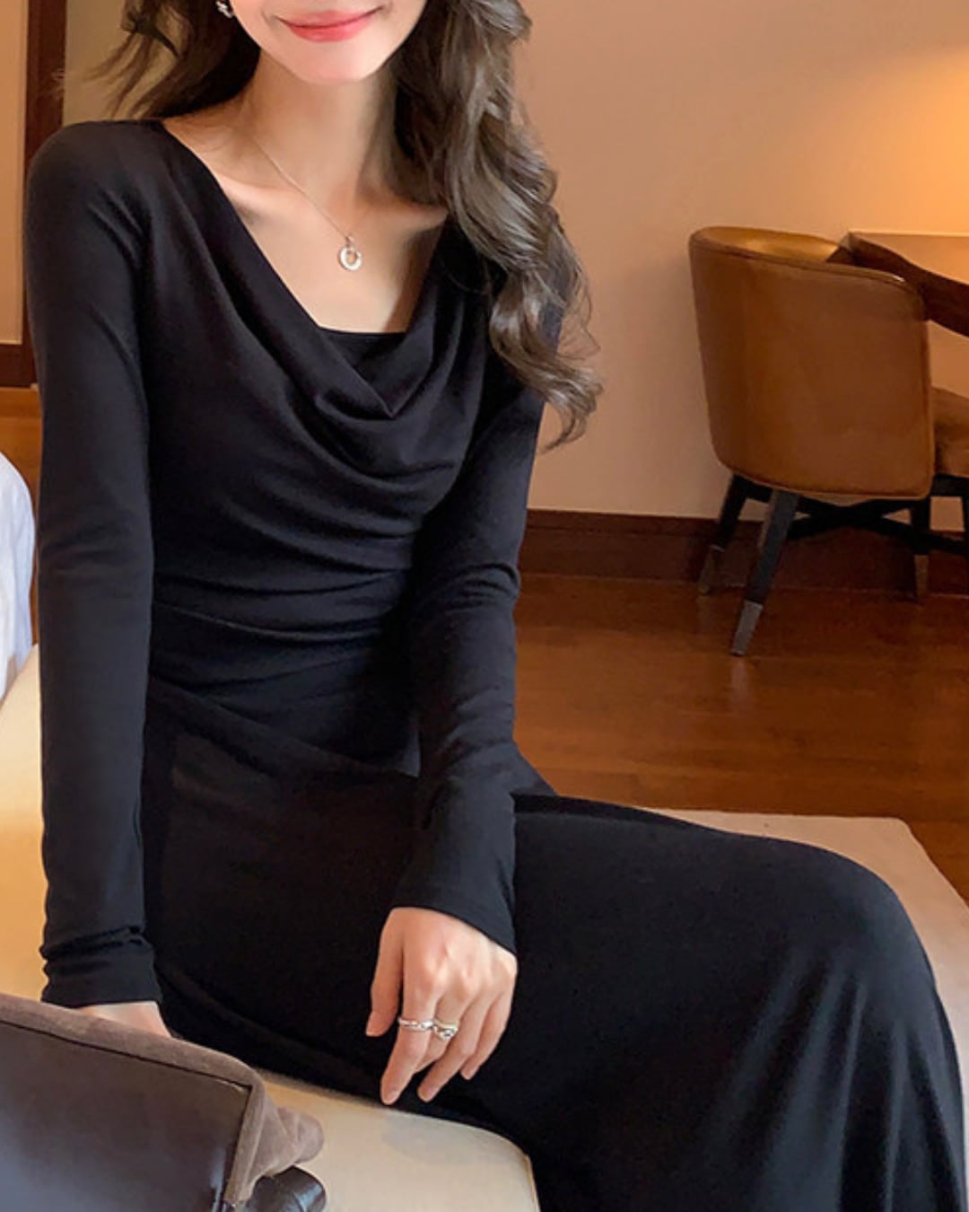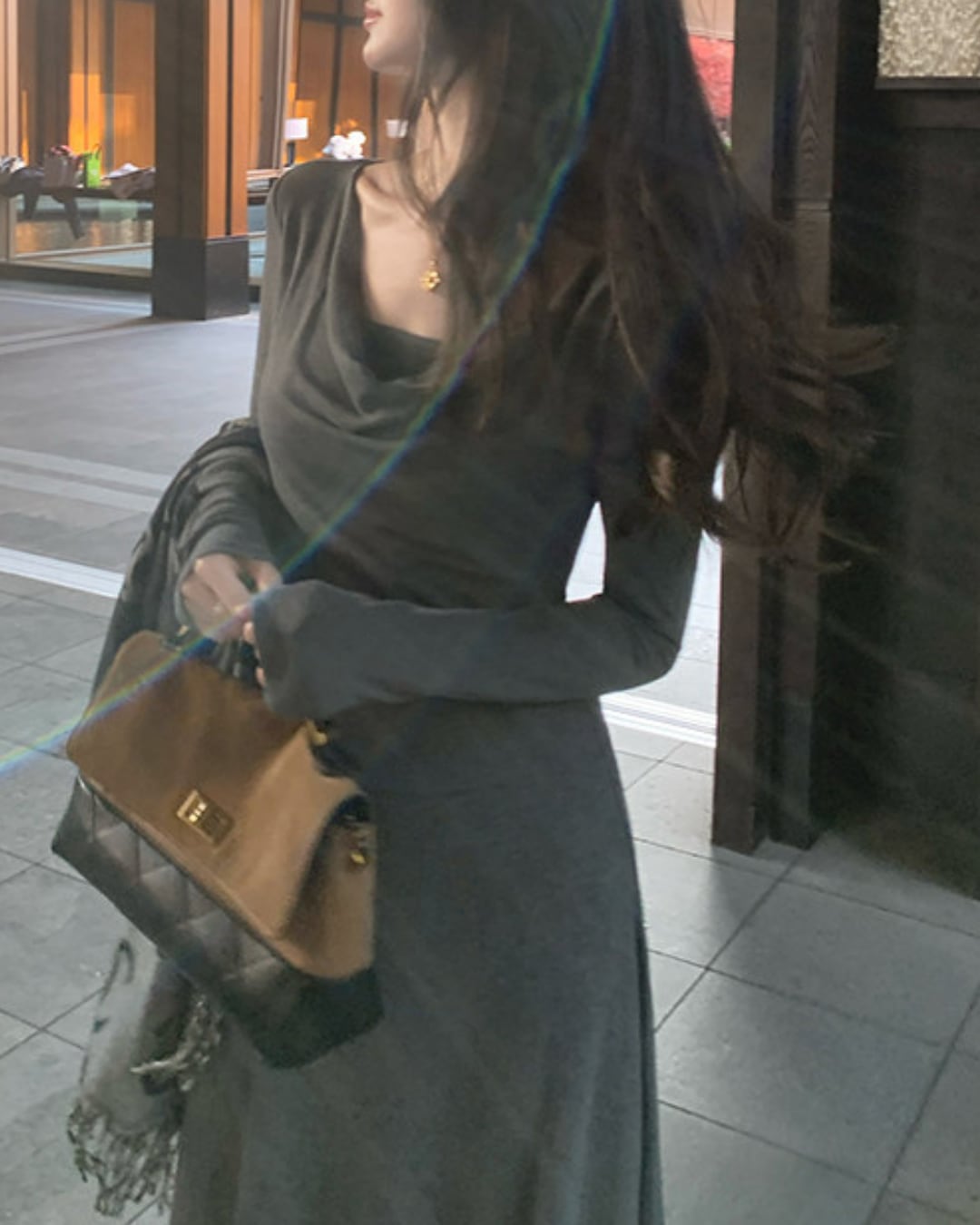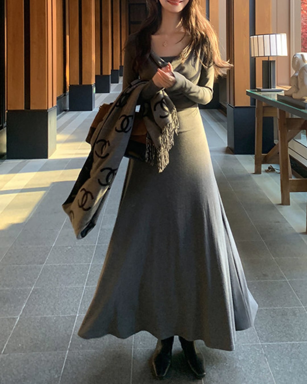 #フィットアンドフレア #ロングワンピ #スタイルアップ #シンプルコーデ #エレガントワンピ #体型カバー