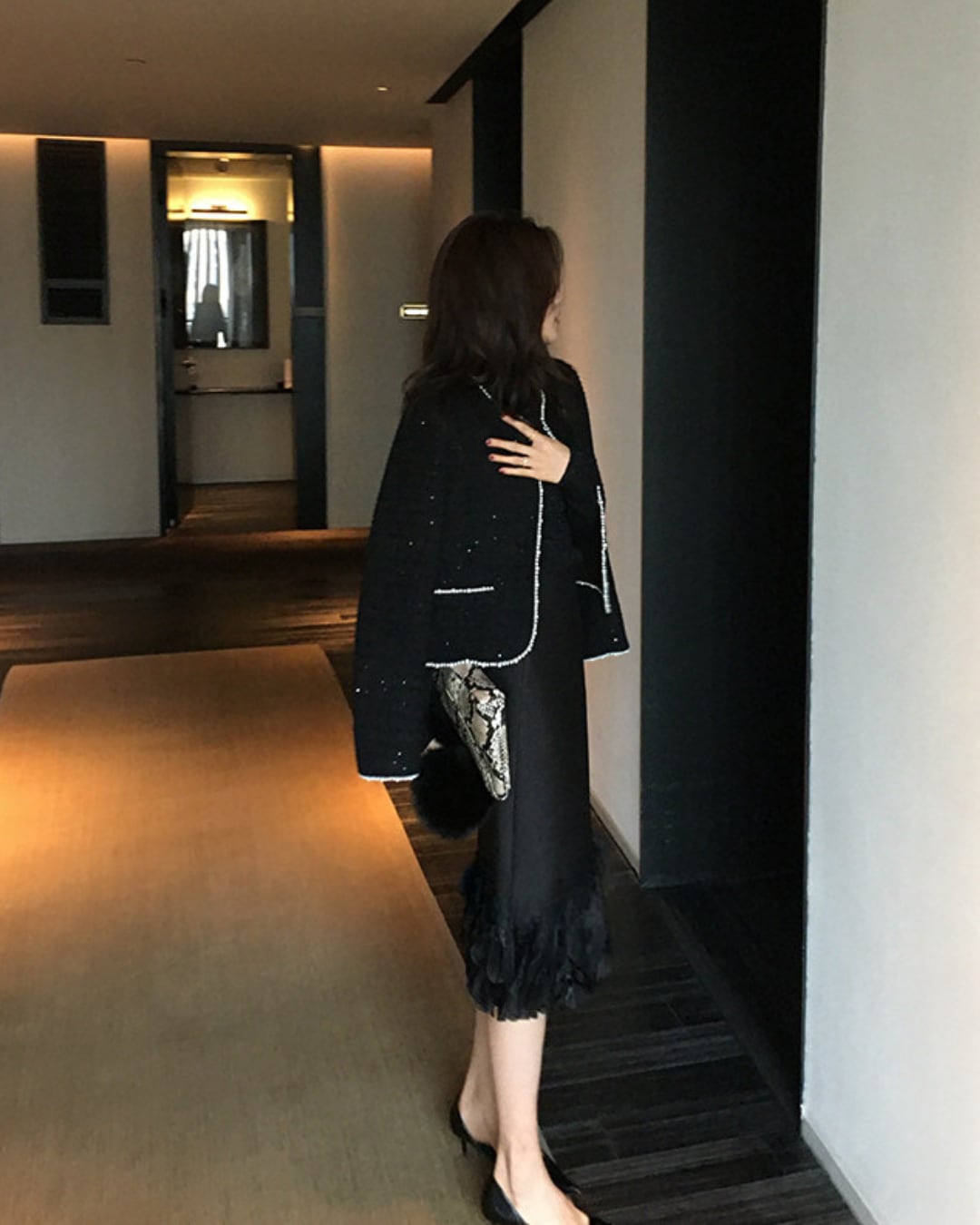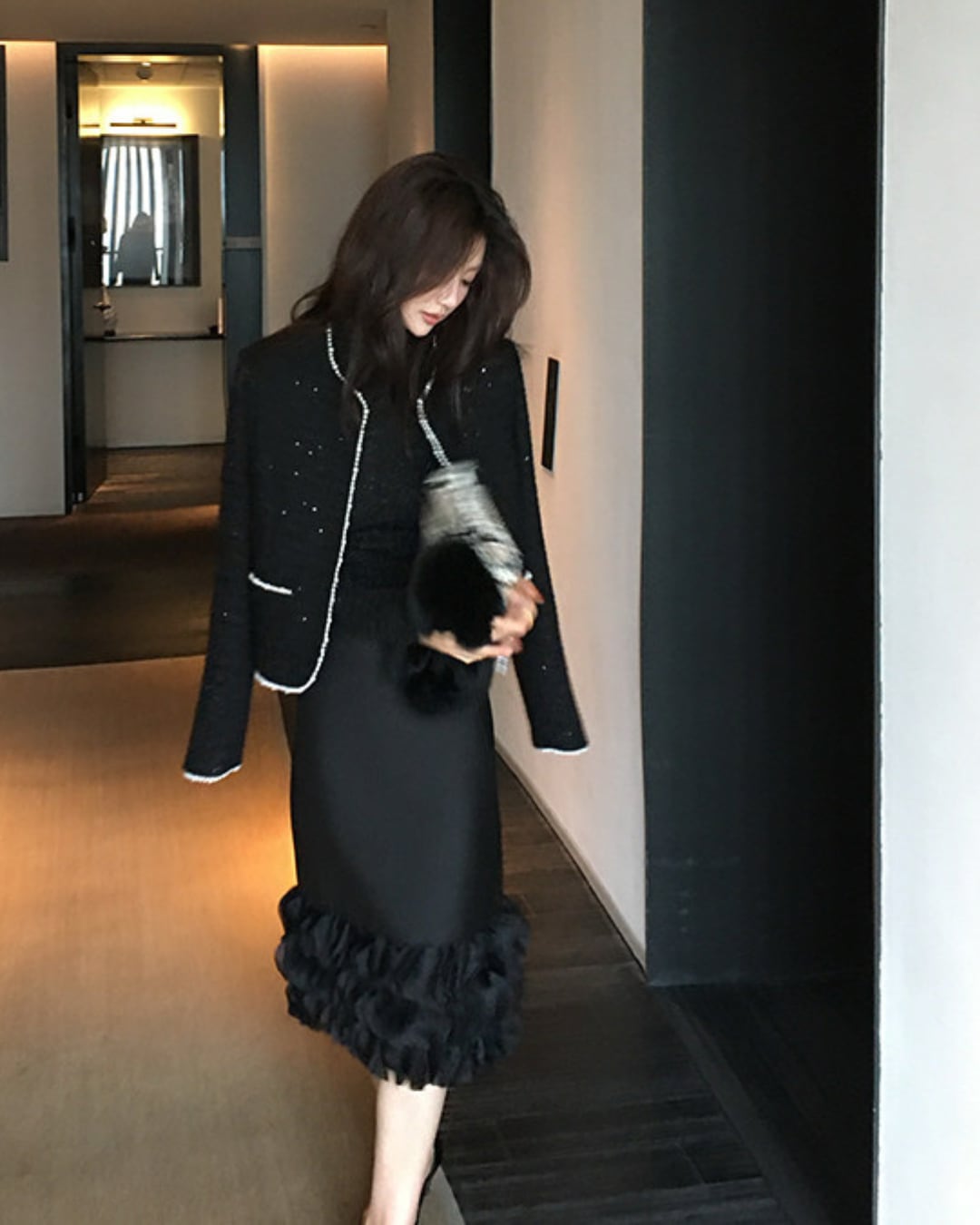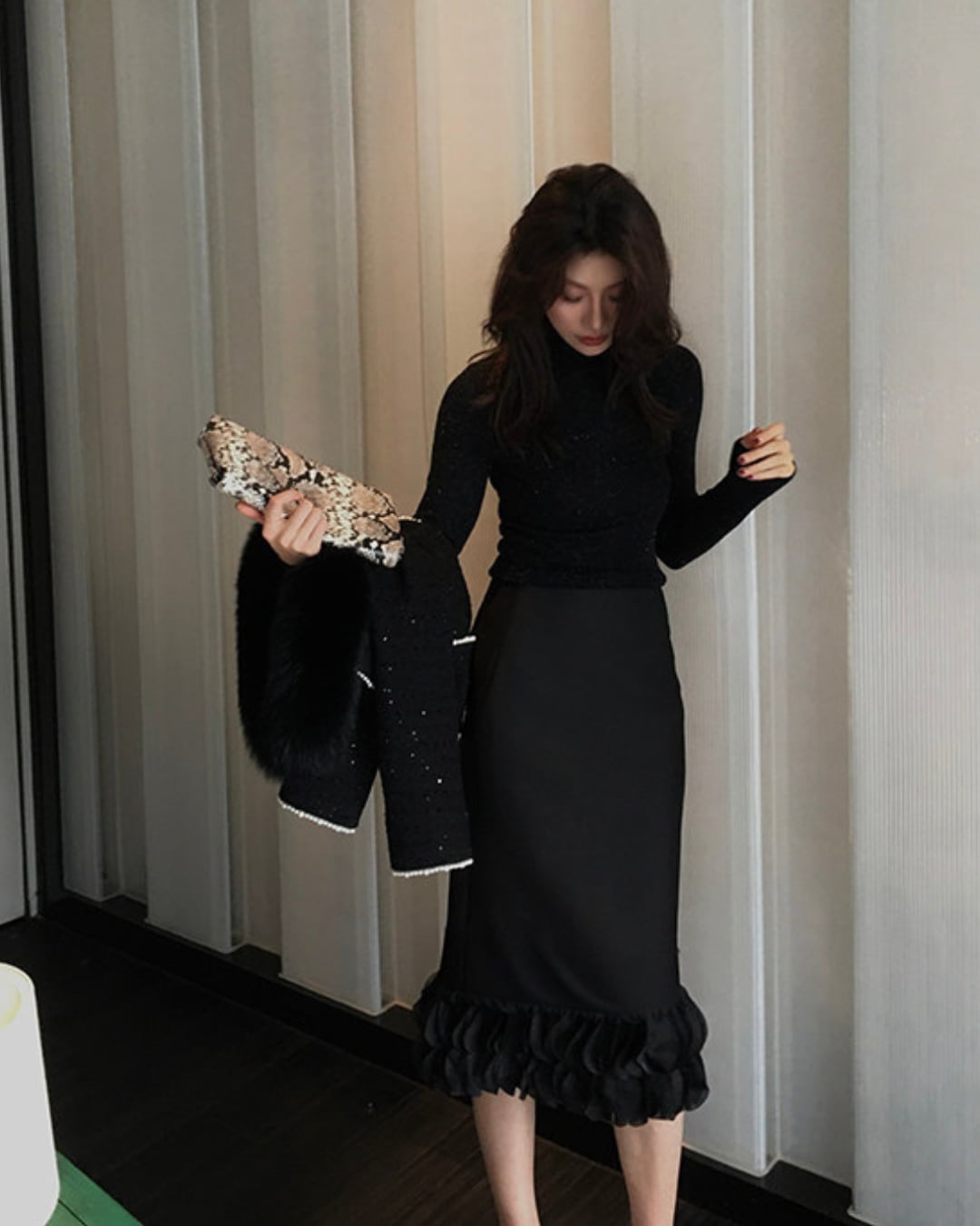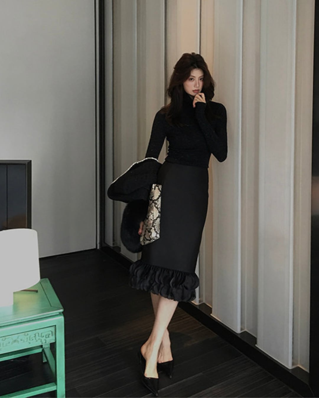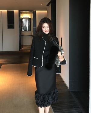#フリルスカート #ミディ丈スカート #美シルエット #Iラインスカート #ブラックコーデ #上品フェミニン
