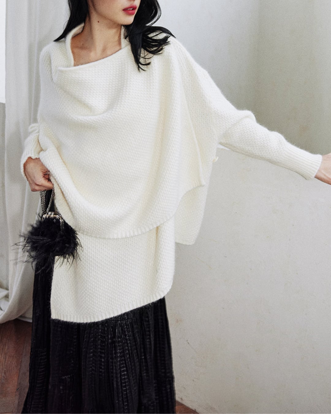 #ドレープカーデ #ツーウェイ #ゆったりシルエット #厚手ニット #ナチュラルスタイル #秋冬アウター
