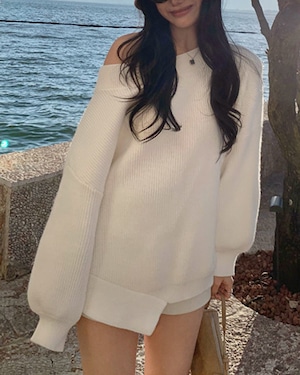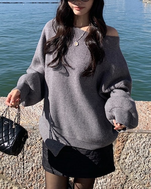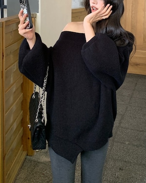 ゆったりシルエットが抜け感を演出するニットトップス。ワンショルダー風にも着られる広めのネックラインがこなれた雰囲気に。柔らかく軽やかな素材で着心地も抜群◎カジュアルにもフェミニンにも合わせやすい万能アイテムです。
