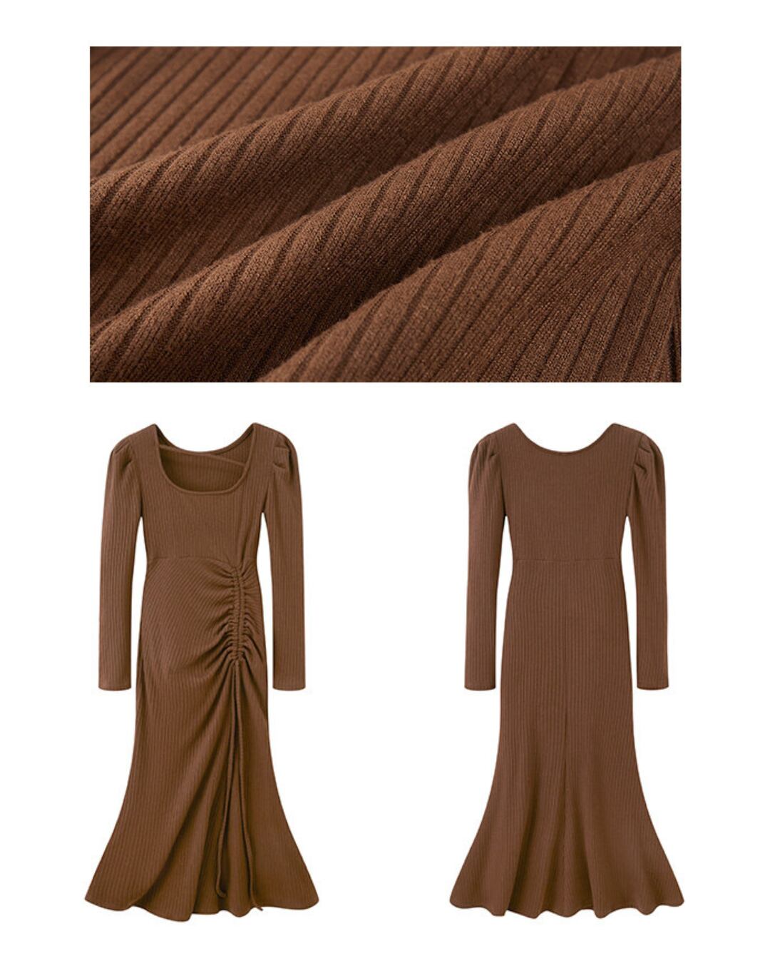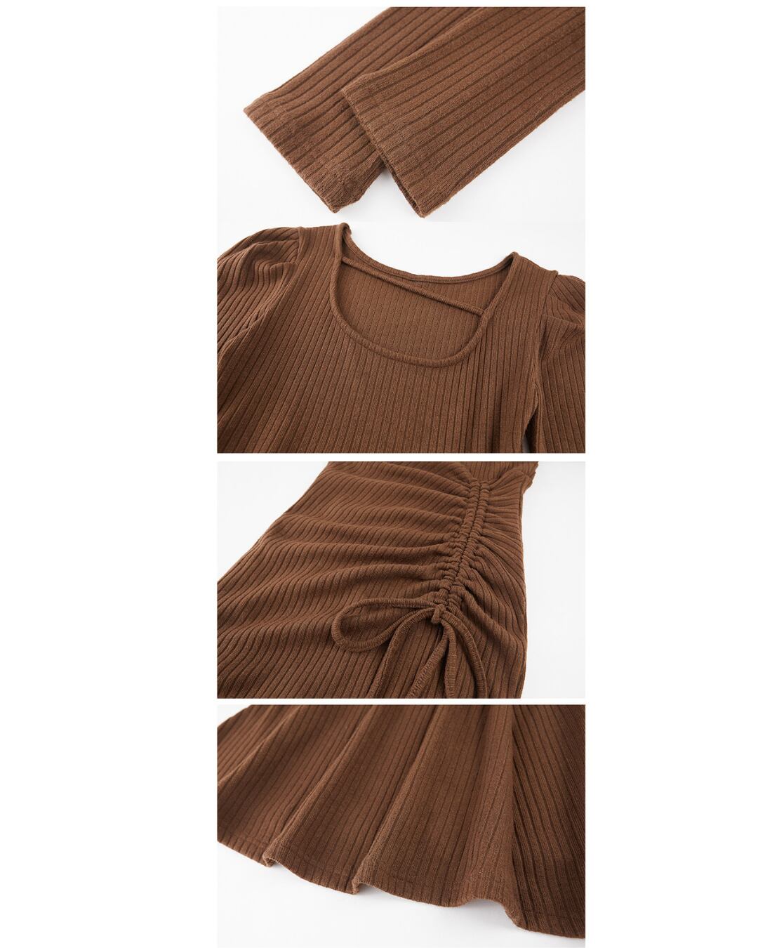 #ニットワンピース #リブニット #スクエアネック #ギャザーデザイン #美シルエット #大人可愛い #秋冬ワンピ
