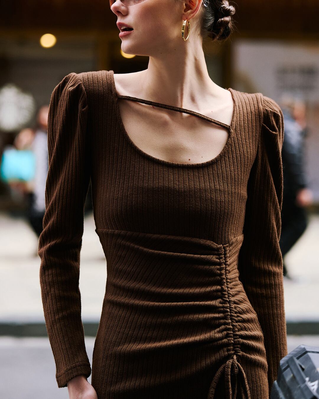 女性らしいシルエットを引き立てる、ボディラインに沿うリブニットワンピース。フロントにあしらったギャザーデザインが立体感を生み、スタイルアップ効果も◎スクエアネックでデコルテをすっきり美しく魅せながら、程よくふんわりとした袖が優しい印象をプラス。一枚で着映える洗練ワンピースは、デートやお呼ばれシーンにもぴったりのアイテムです。