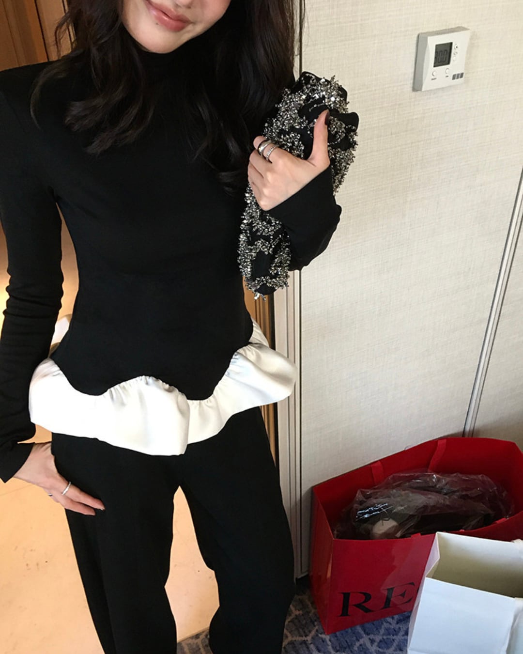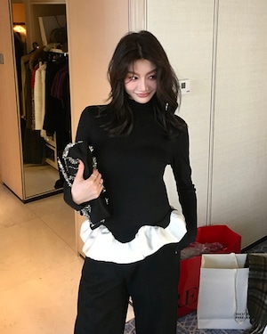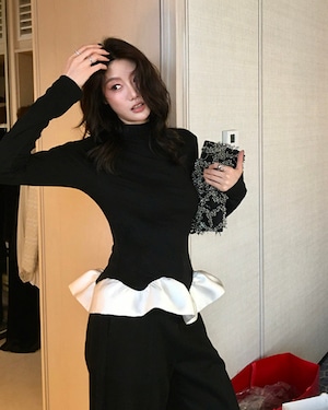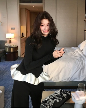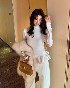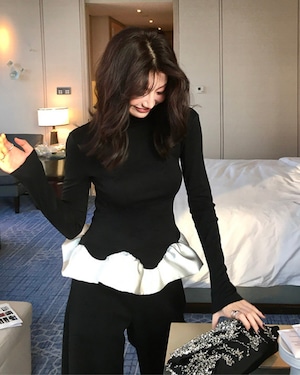 #ペプラムトップス #ウエストカバー #タートルネック #シルク混素材 #大人フェミニン #上品カジュアル