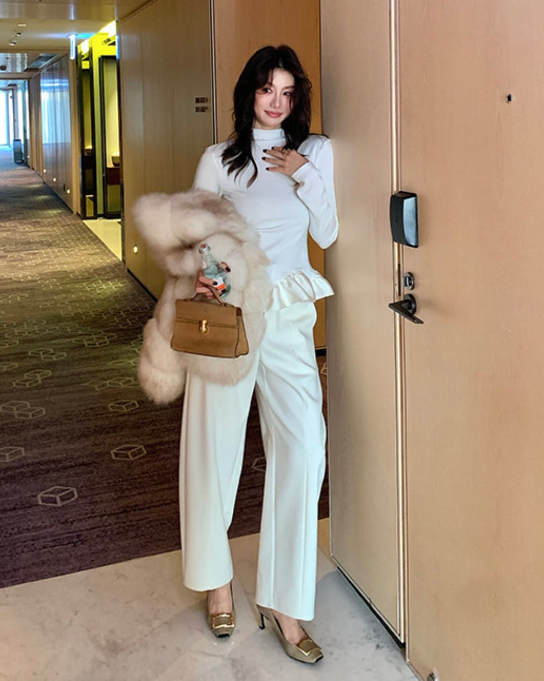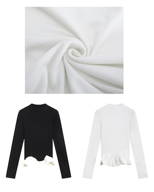 高級感のあるシルク混素材で仕立てた、タートルネックトップス。ウエストの立体的なペプラム風フリルが、腰まわりを自然にカバーしながらもフェミニンな印象をプラス。なめらかな肌ざわりで着心地が良く、薄手ながらもしっかりと暖かいのが特長。インナーとしても、1枚で主役としても使える万能アイテムで、パンツにもスカートにも合わせやすいデザインです。オンオフ問わず秋冬のレイヤードスタイルに重宝します。