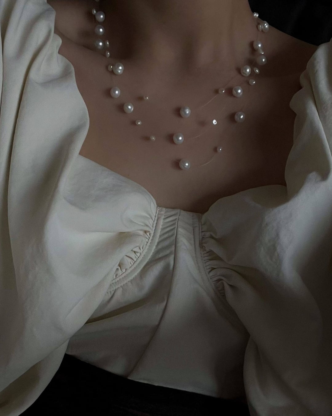 #パールネックレス #淡水パール #バロックパール #ハンドメイドアクセサリー #重ね付け風 #S925シルバー #フェミニンジュエリー