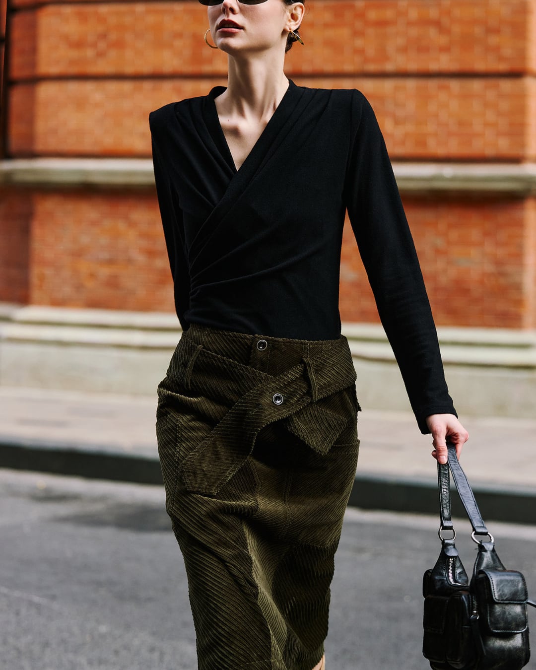 立体的なドレープが美しいカシュクールデザインのVネックトップス。デコルテをすっきりと見せ、身体に程よくフィットするシルエットが上品な印象を演出します。シンプルながら存在感があり、スカート・パンツどちらにも合わせやすい一枚です。