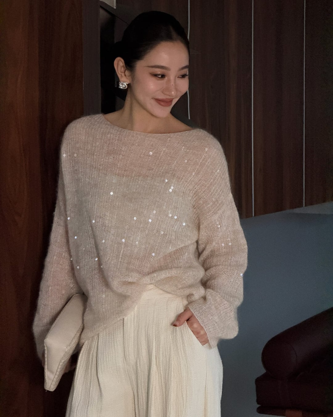 #ニットトップス #スパンコールニット #大人ニット #秋冬コーデ #上品カジュアル