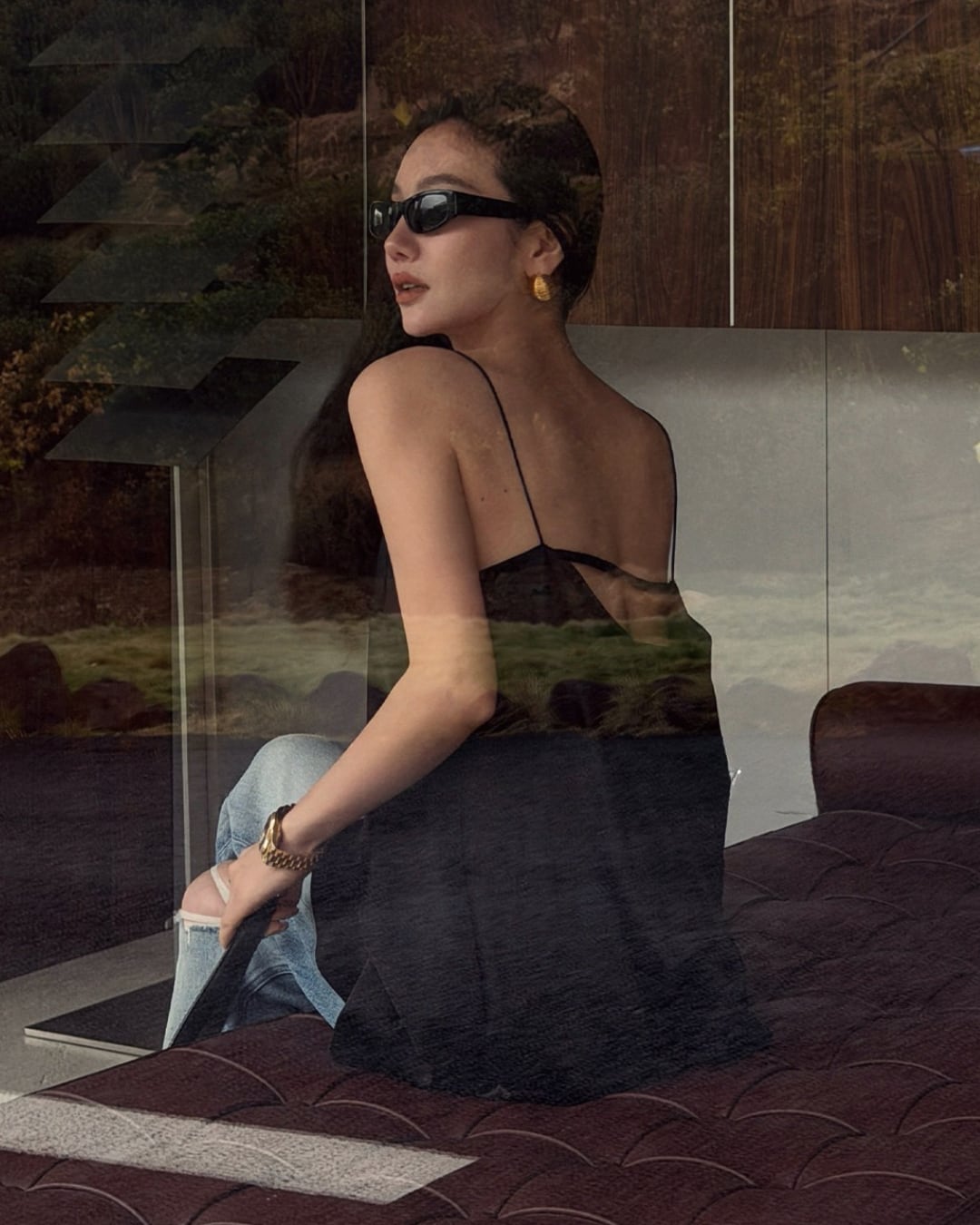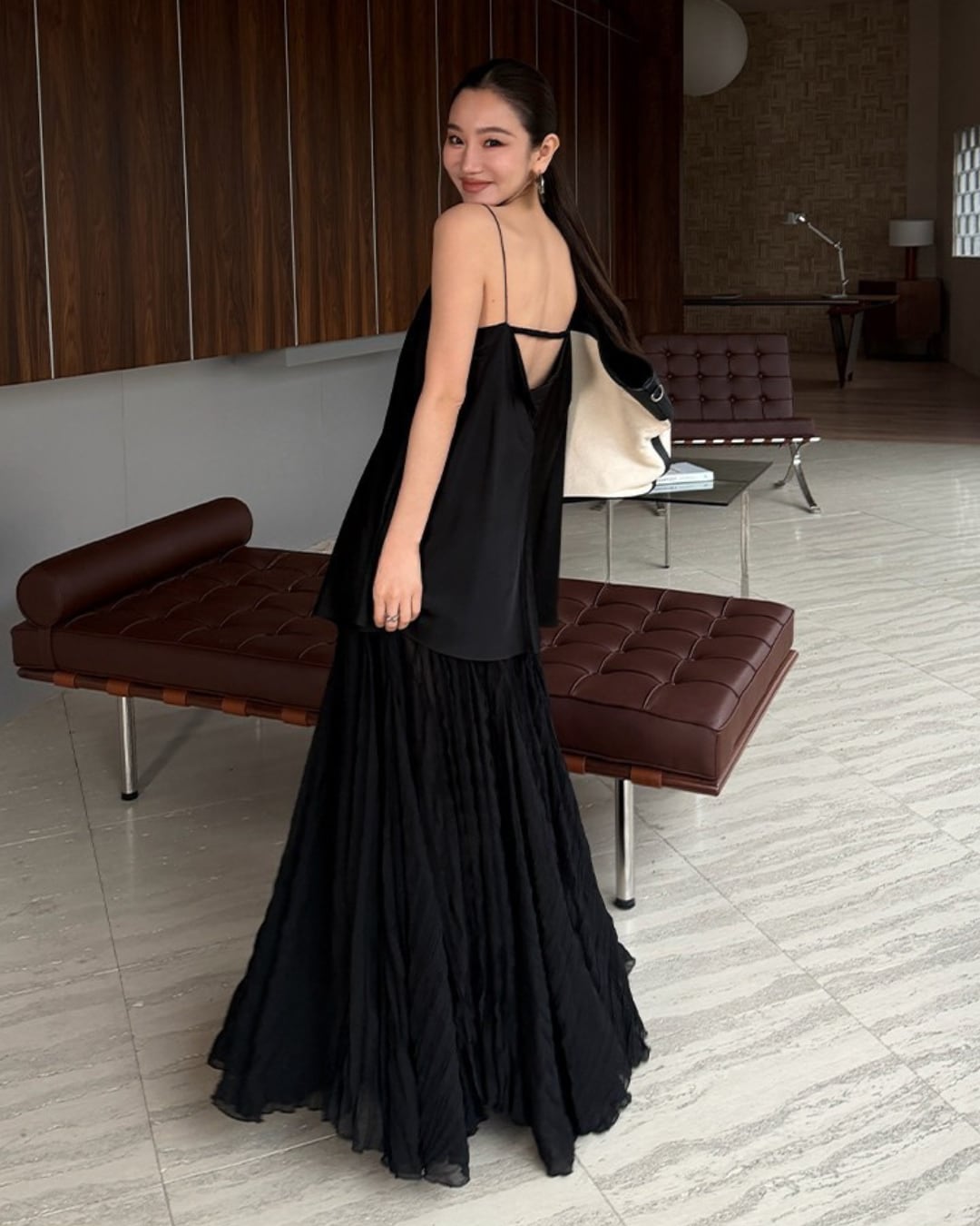 #キャミソール #サテントップス #Vネック #レイヤードコーデ #大人モード