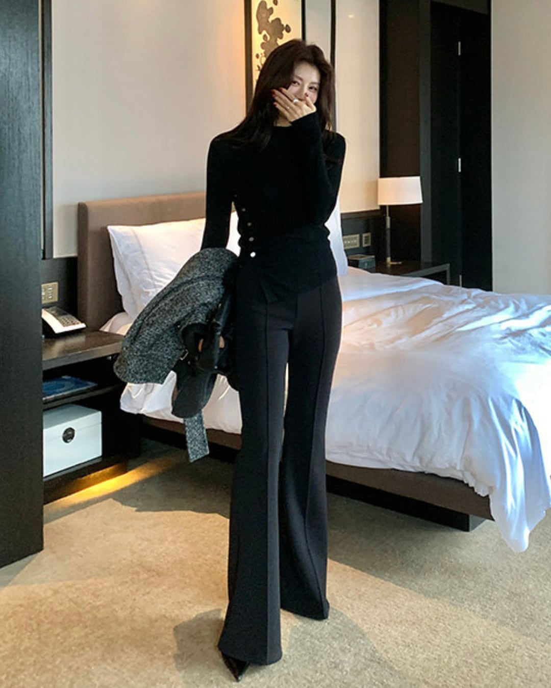 クラシックなブラックカラーのスラックスパンツ。柔らかく肌当たりの良い素材で、動きやすく快適な履き心地。腰まわりから脚にかけてすっきりとしたシルエットで、日常使いからきれいめなスタイリングまで幅広く活躍します。