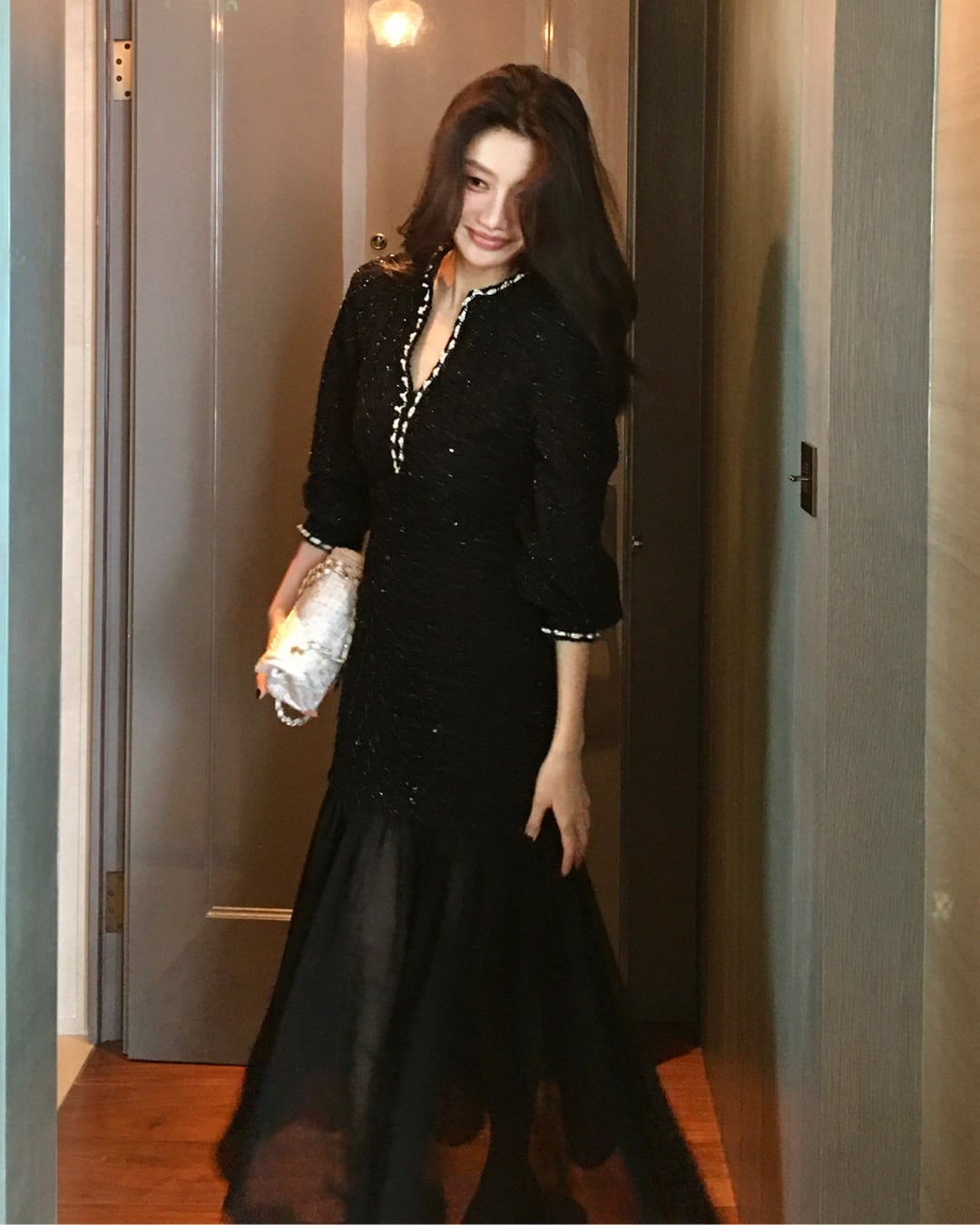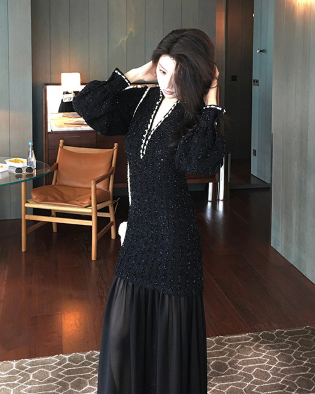 #スパンコールワンピース #ロングワンピース #ティアードワンピース #Vネック #パーティードレス #高見えコーデ