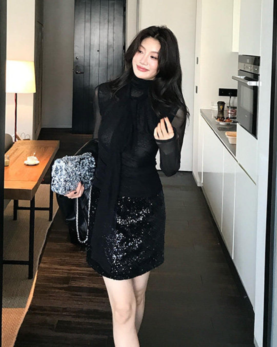 #スパンコールスカート #ミニスカート #ハイウエスト #きらきらコーデ #タイトスカート #イベントコーデ
