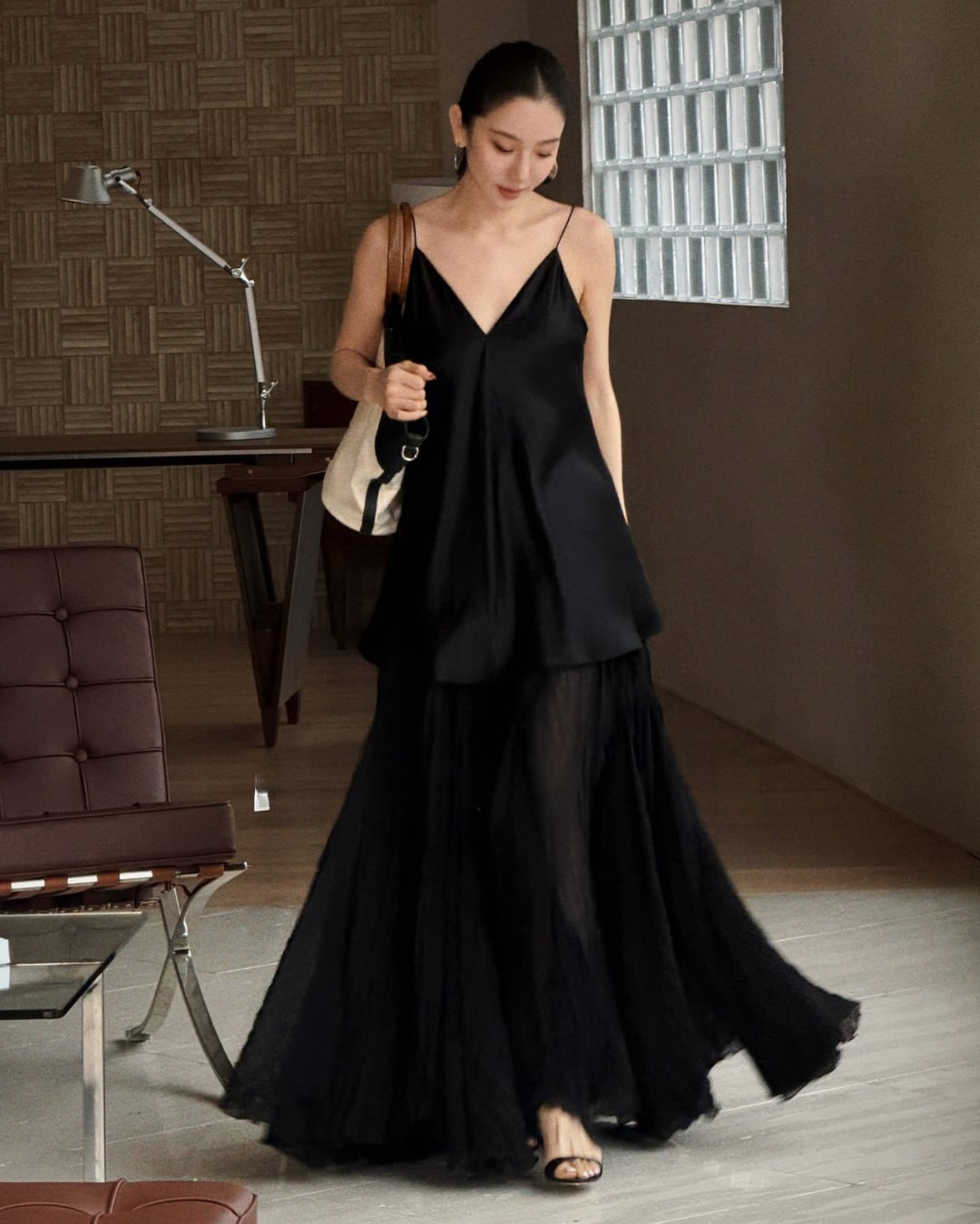 #プリーツスカート #ロングスカート #ブラックコーデ #美シルエット #フェミニンスタイル #体型カバー #春夏秋冬コーデ