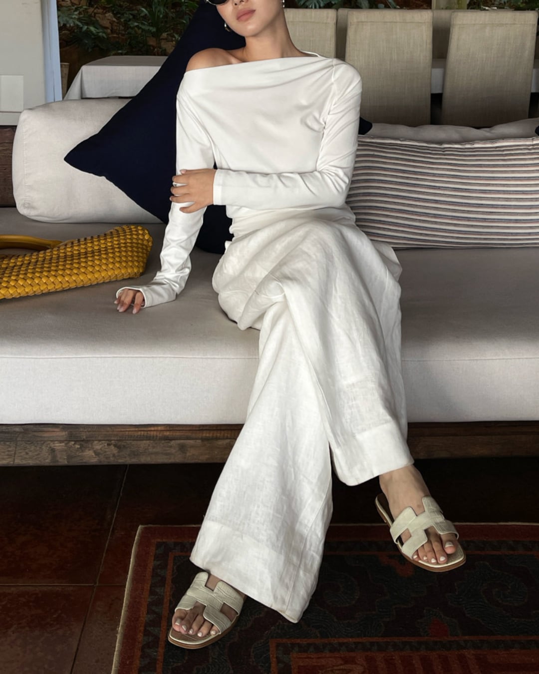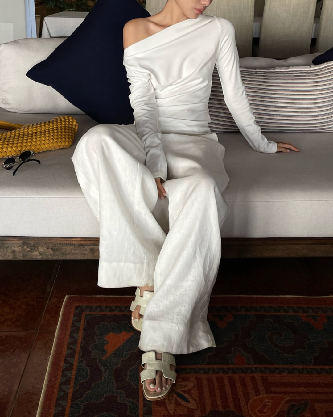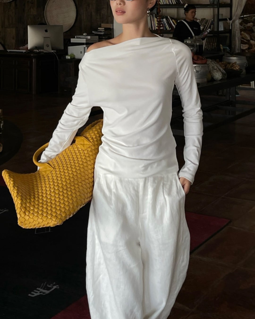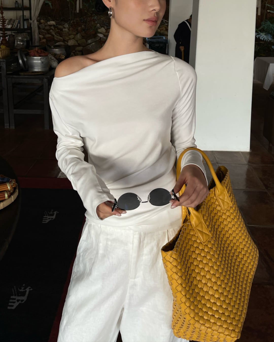 #オフショルダー #アシンメトリー #スリムトップス #夏コーデ #きれいめカジュアル #美デコルテ