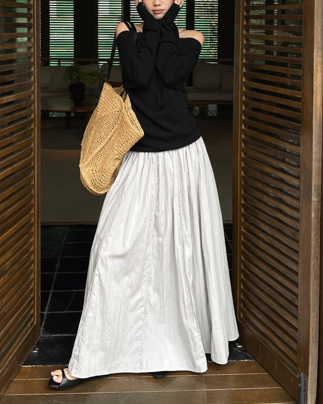 #ホルターネック #オフショルダー #ニットトップス #ブラックコーデ #華奢見え #大人カジュアル #きれいめスタイル