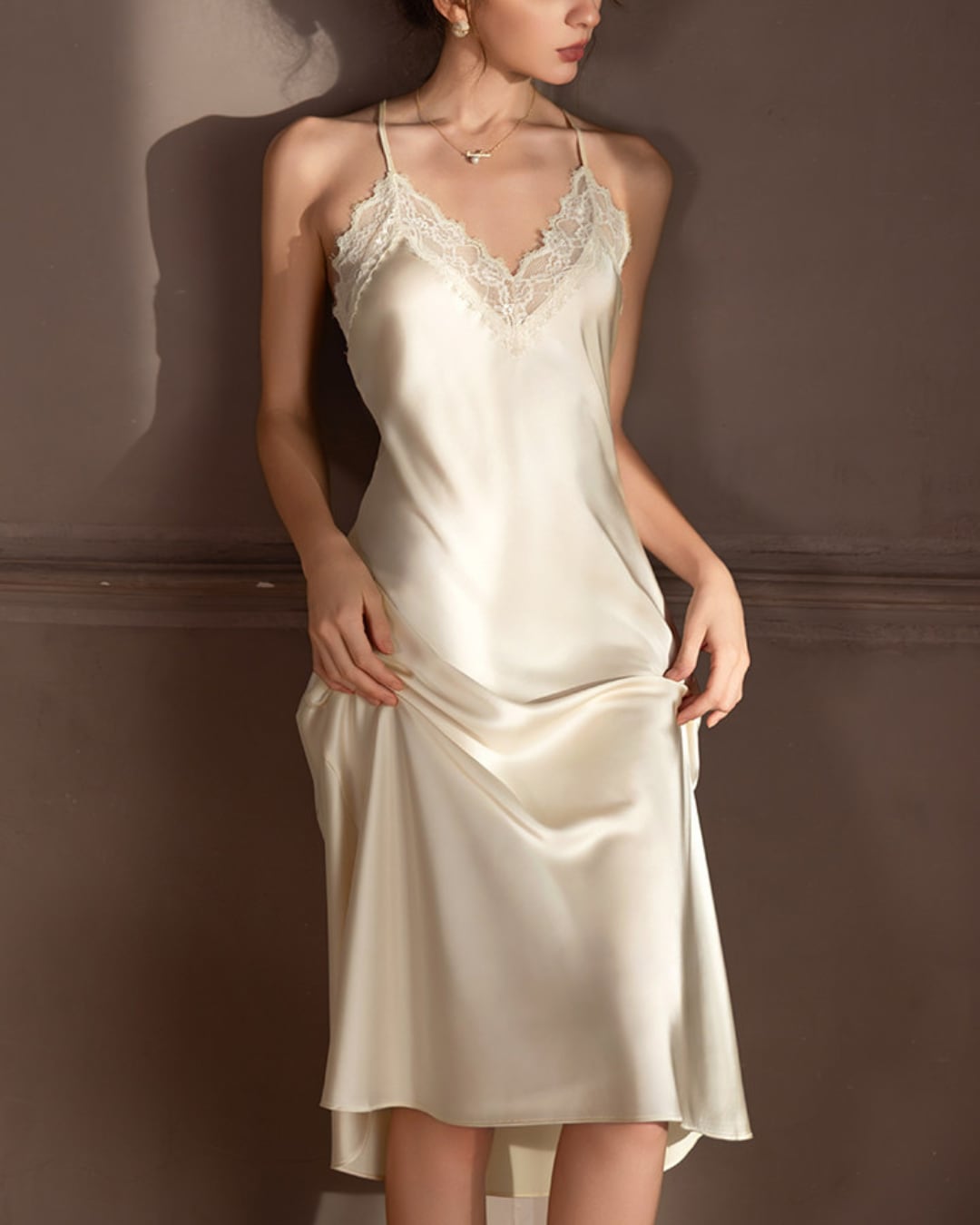 #ルームウェア #キャミワンピース #ロングガウン #レースデザイン #サテン #大人リラックス