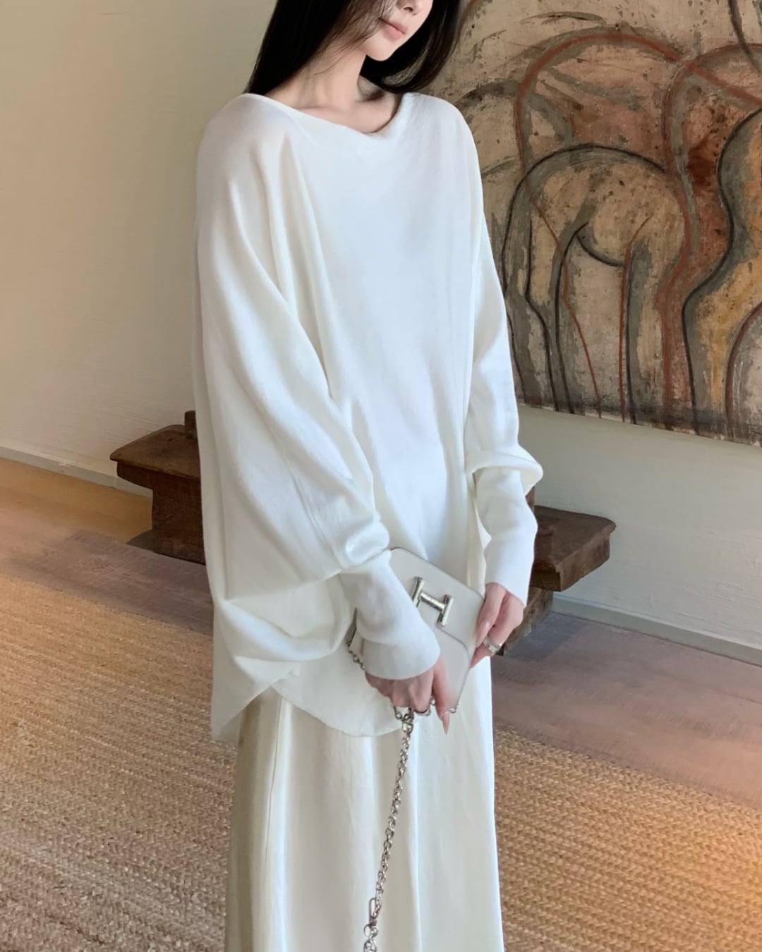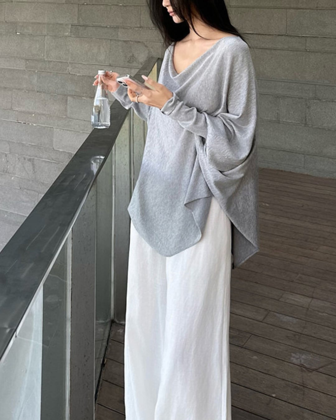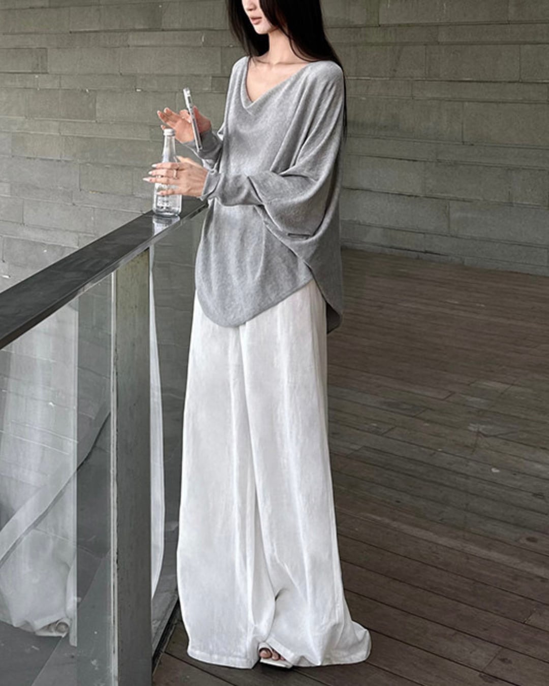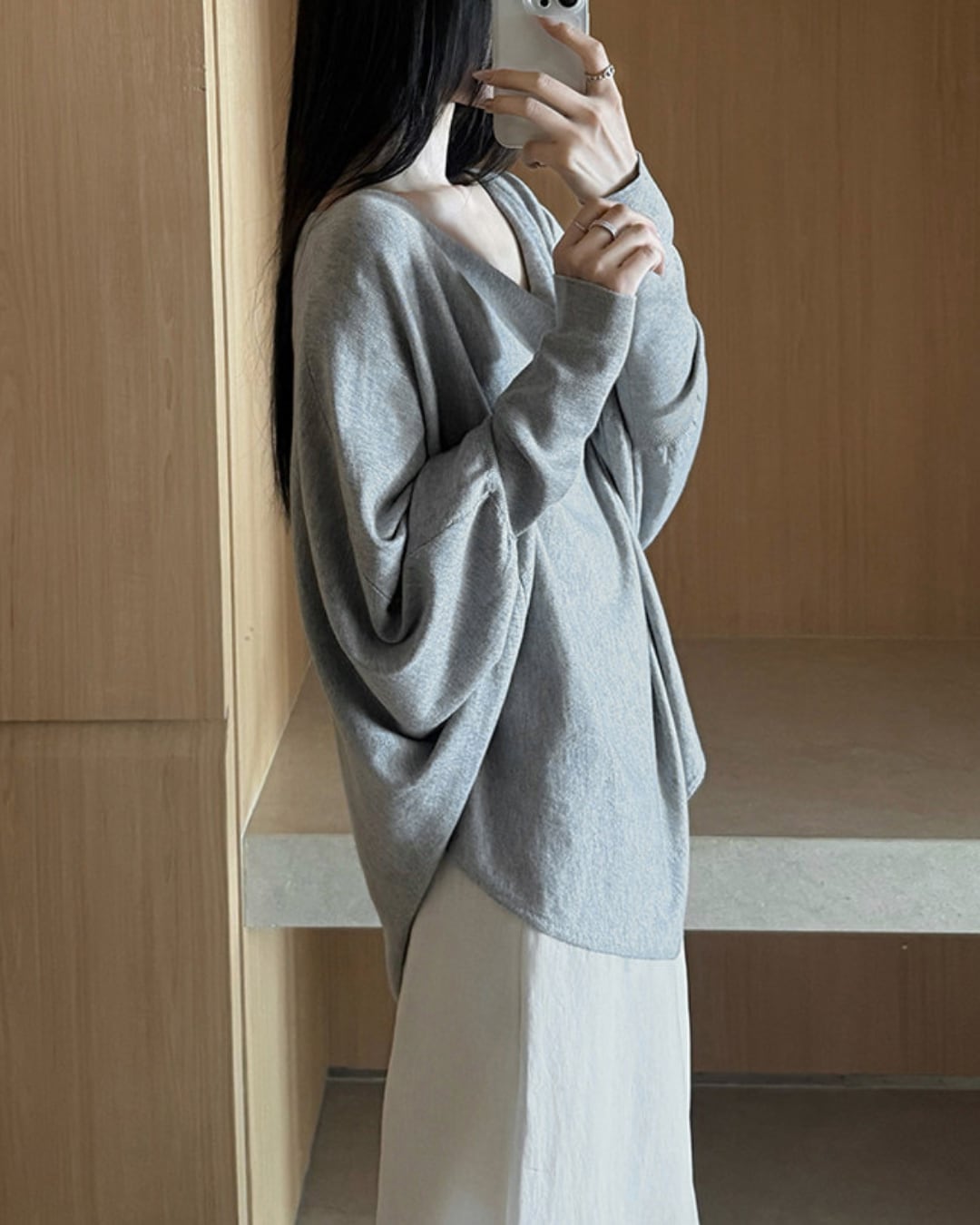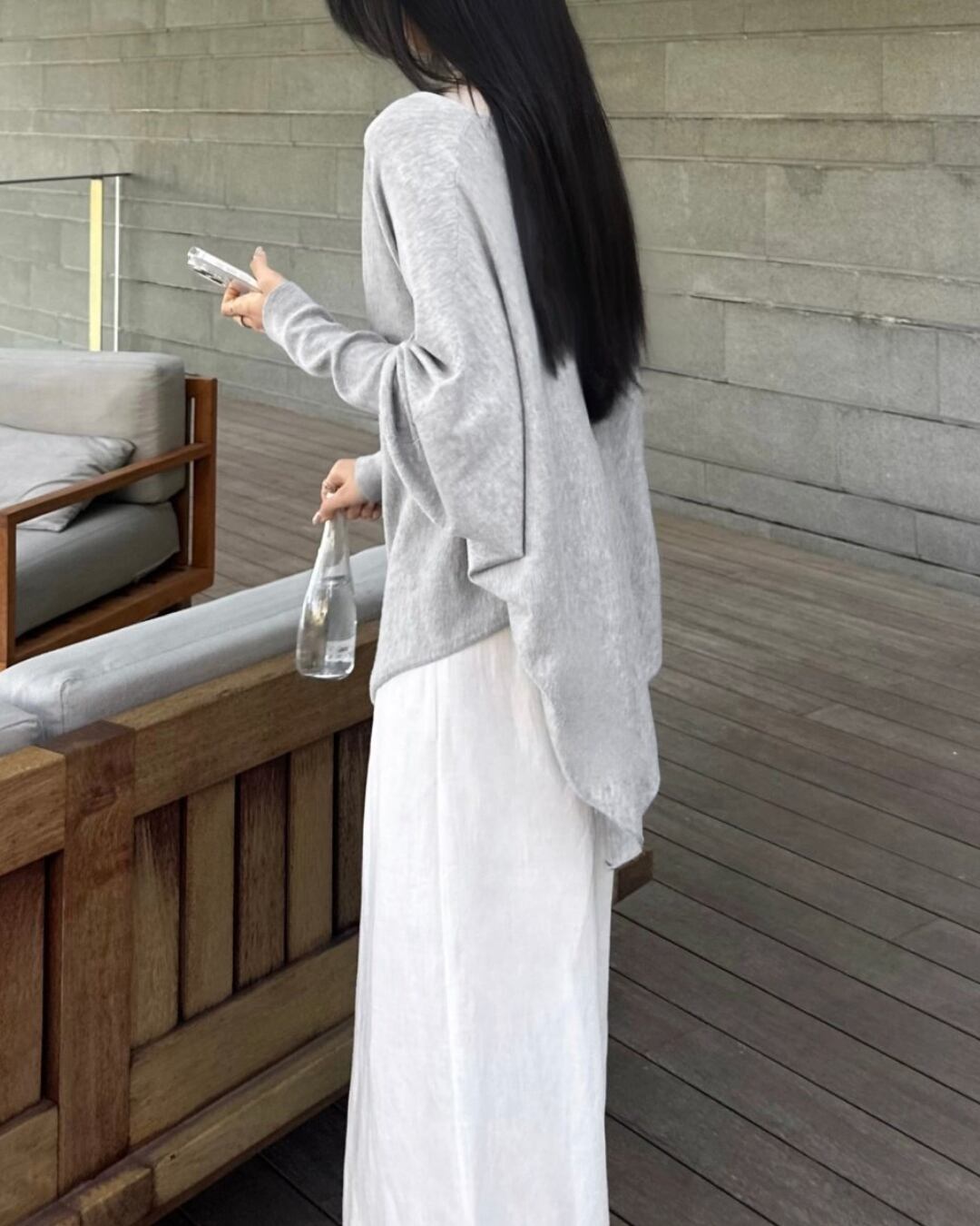 ゆったりとしたシルエットが魅力のVネックニットトップス。落ち感のある柔らかな素材が、抜け感のある大人スタイルを演出します。広めのネックラインがデコルテをきれいに見せ、ヒップにかかる丈感で体型カバーも◎ワンピースやサテンアイテムとのレイヤードにも相性抜群です。シンプルながらもこなれ感を演出できる万能トップスです。