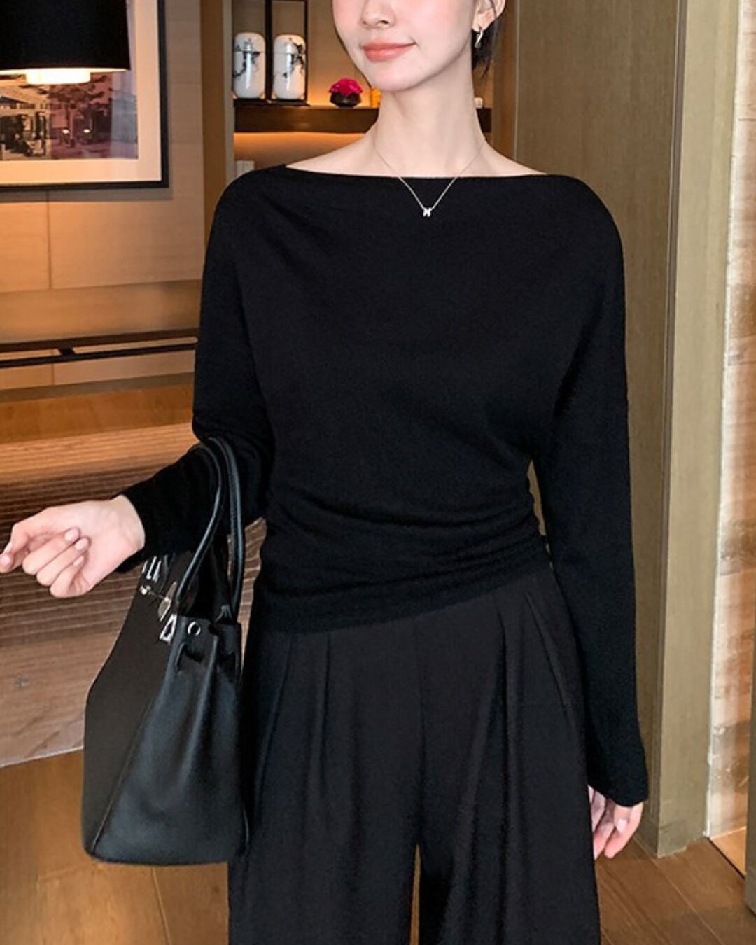 #ボートネック #ウエストシェイプ #ウール混 #きれいめコーデ #大人トップス #上品スタイル