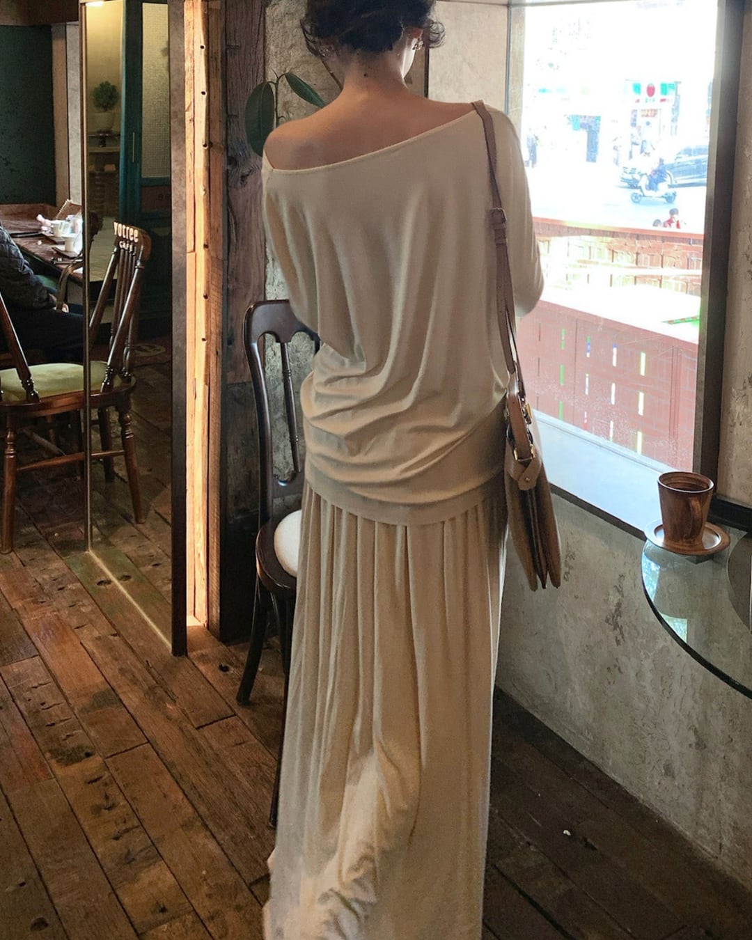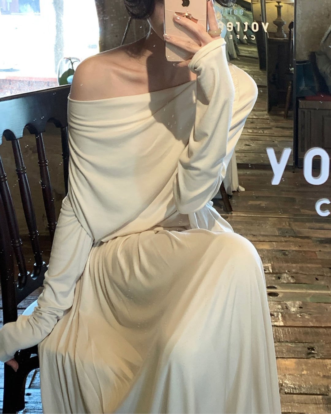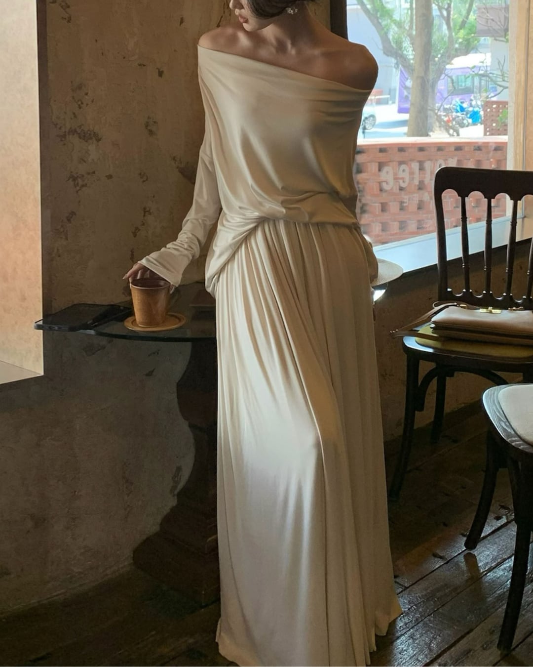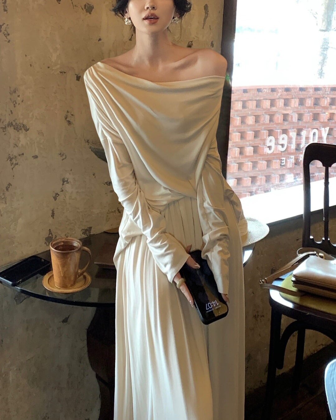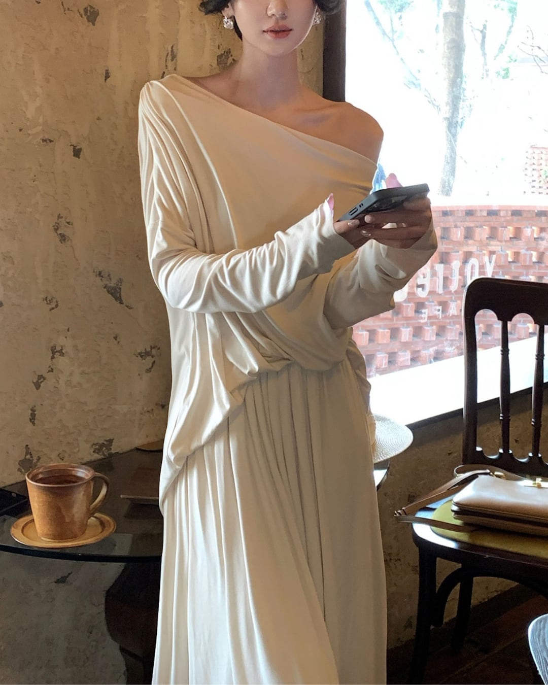 #ワンショルダー #ドレープトップス #大人コーデ #エレガントスタイル #アイボリートップス