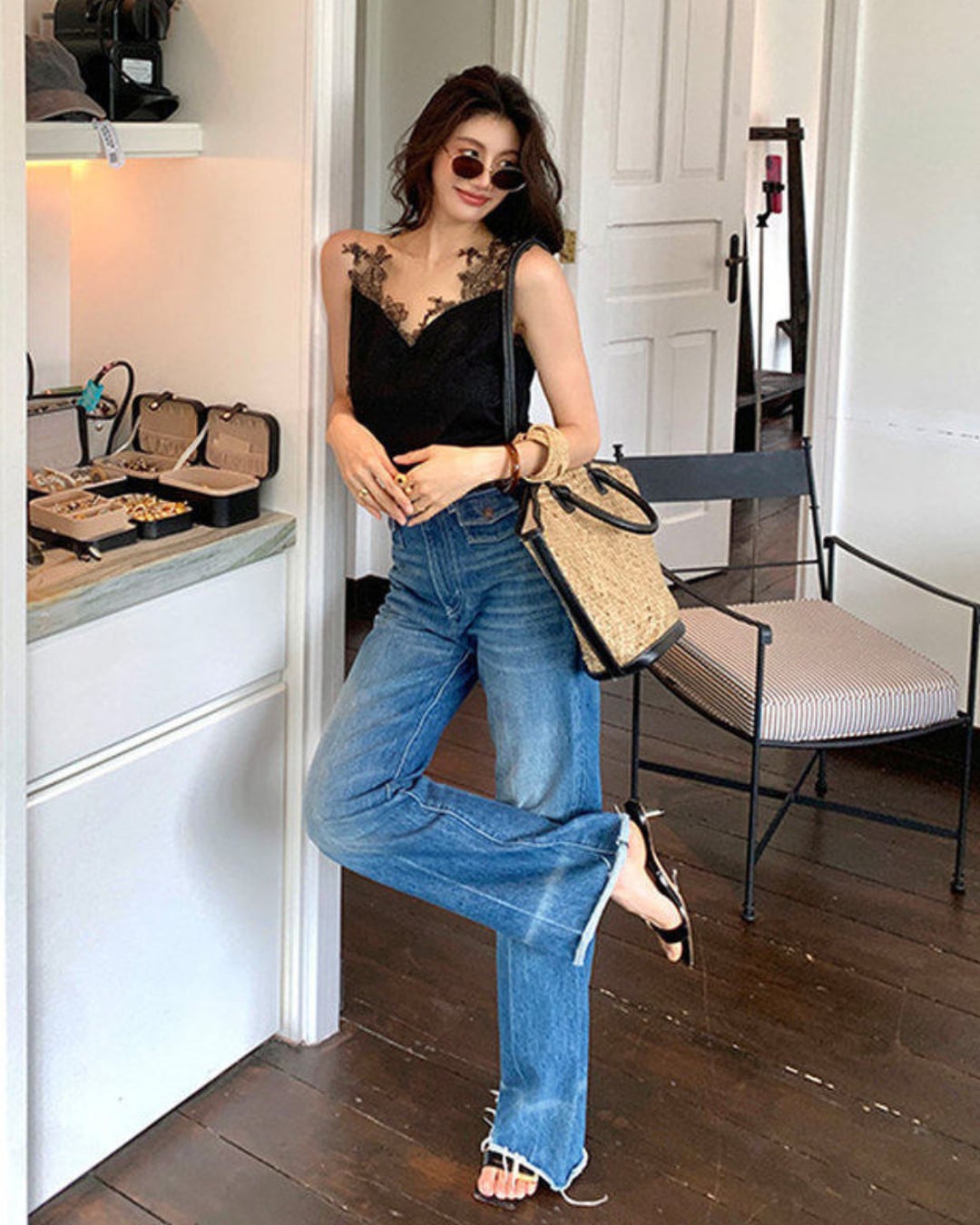 繊細なレースとシアーデザインが目を惹く、上品なノースリーブトップス。デコルテ部分に透け感のあるレースをあしらい、顔まわりを華やかに演出。ボディはすっきりとしたシルエットで、甘くなりすぎず大人っぽい印象に仕上げました。一枚で主役になるデザインなので、デニム合わせでカジュアルダウンしても、スラックスやスカートと合わせてきれいめにも◎シーズンレスで活躍する万能アイテムです。