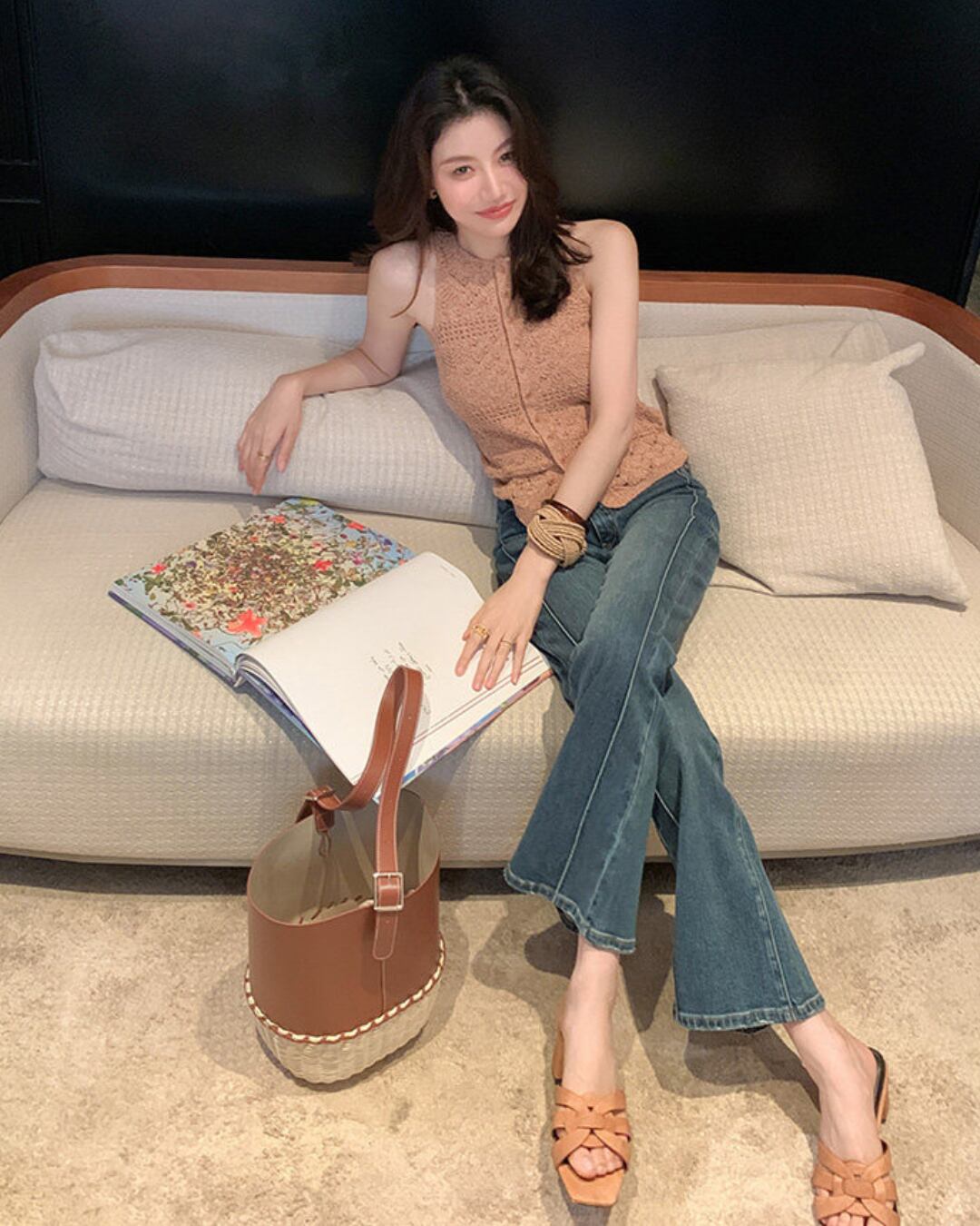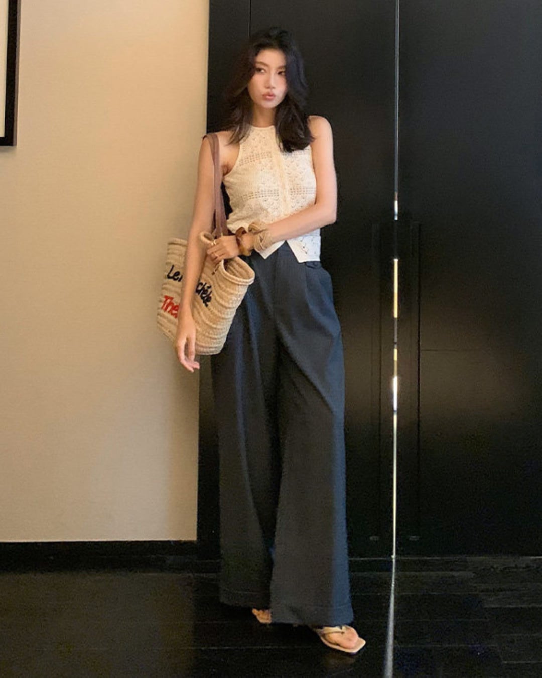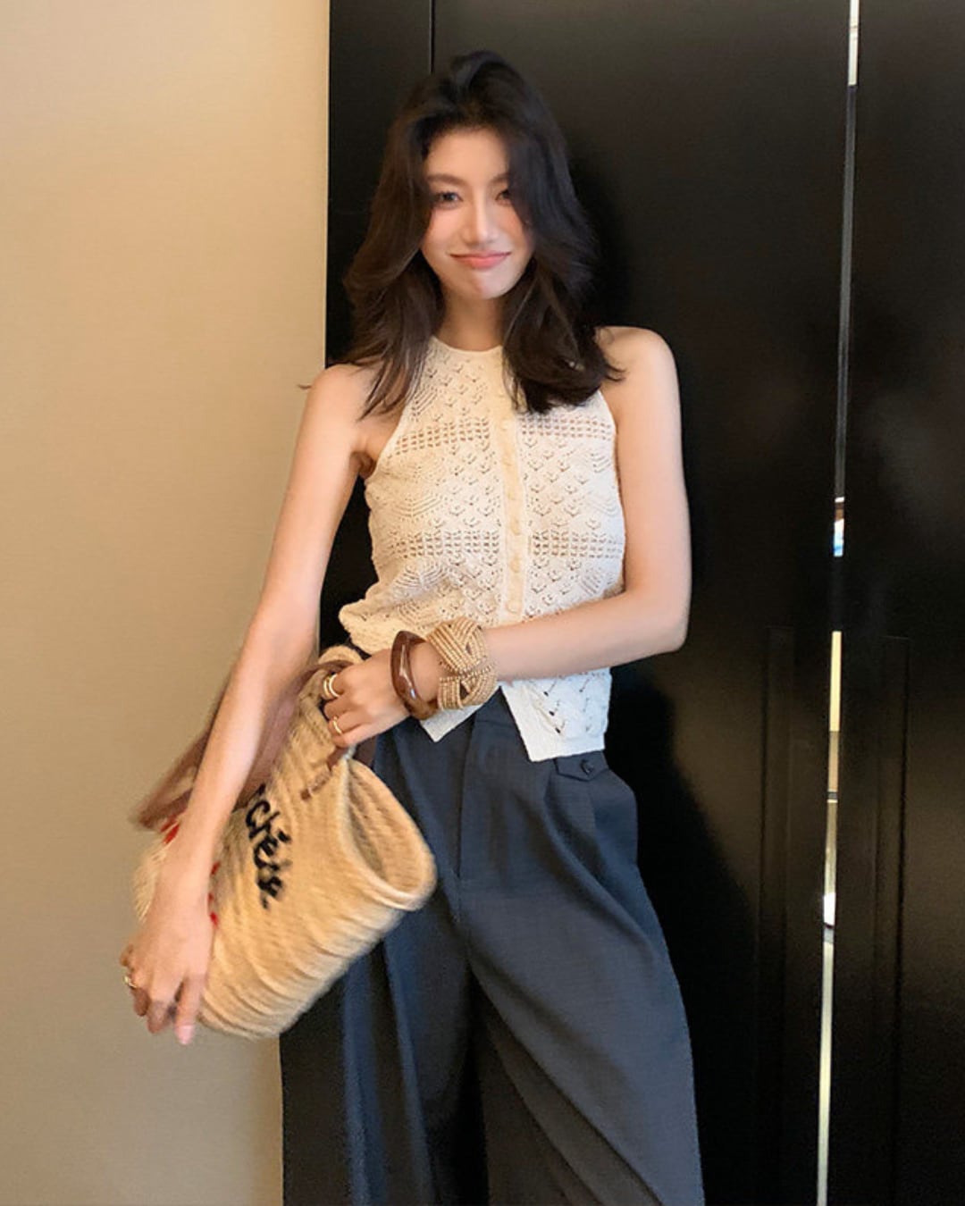 #ニットベスト #クロシェ編み #透かし編み #大人カジュアル #春夏コーデ #レイヤードコーデ