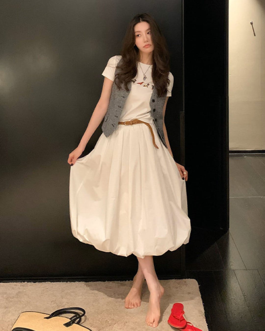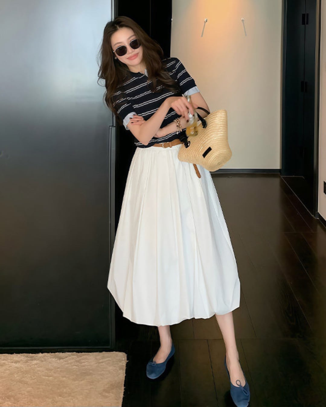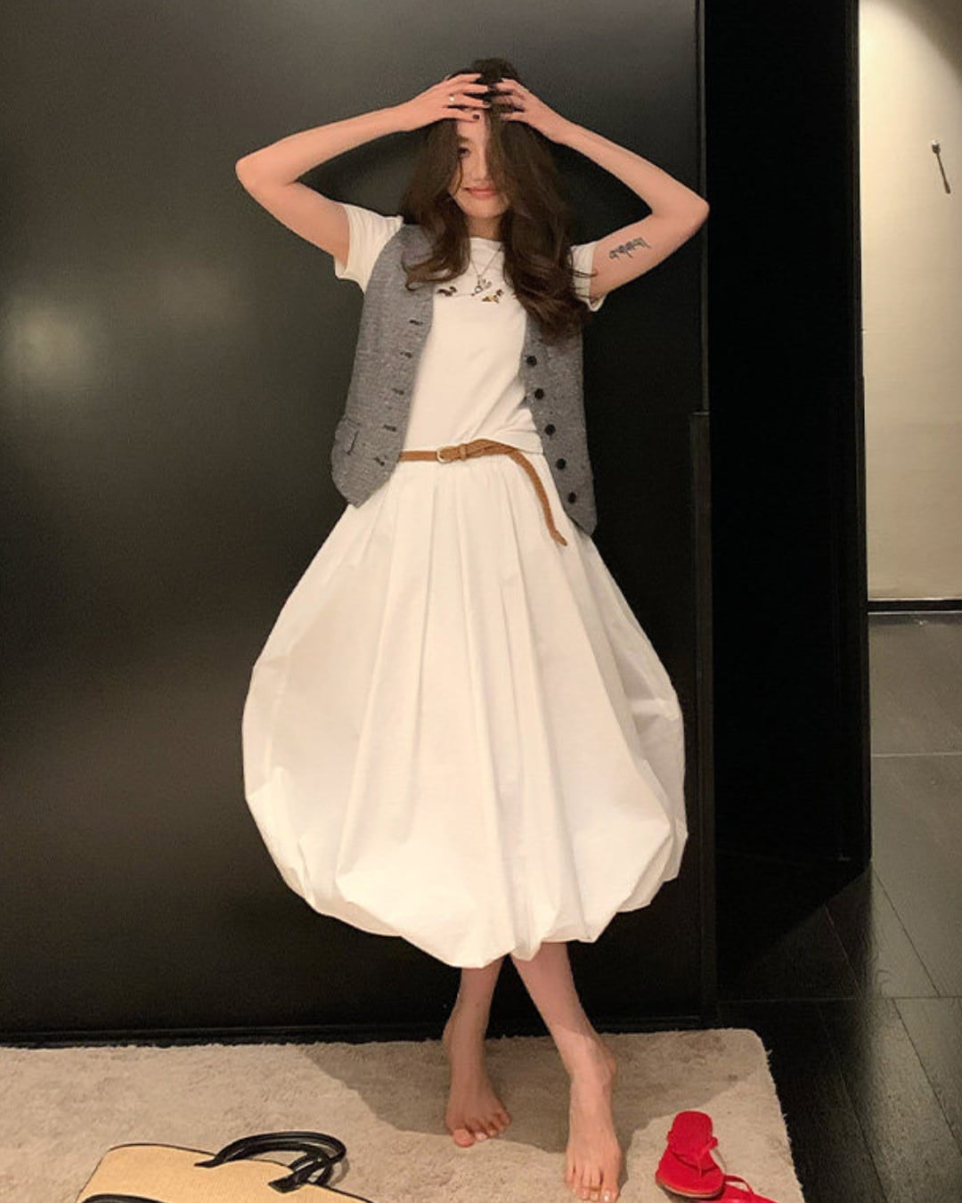 #ロングスカート #白スカート #バルーンスカート #大人コーデ #きれいめカジュアル