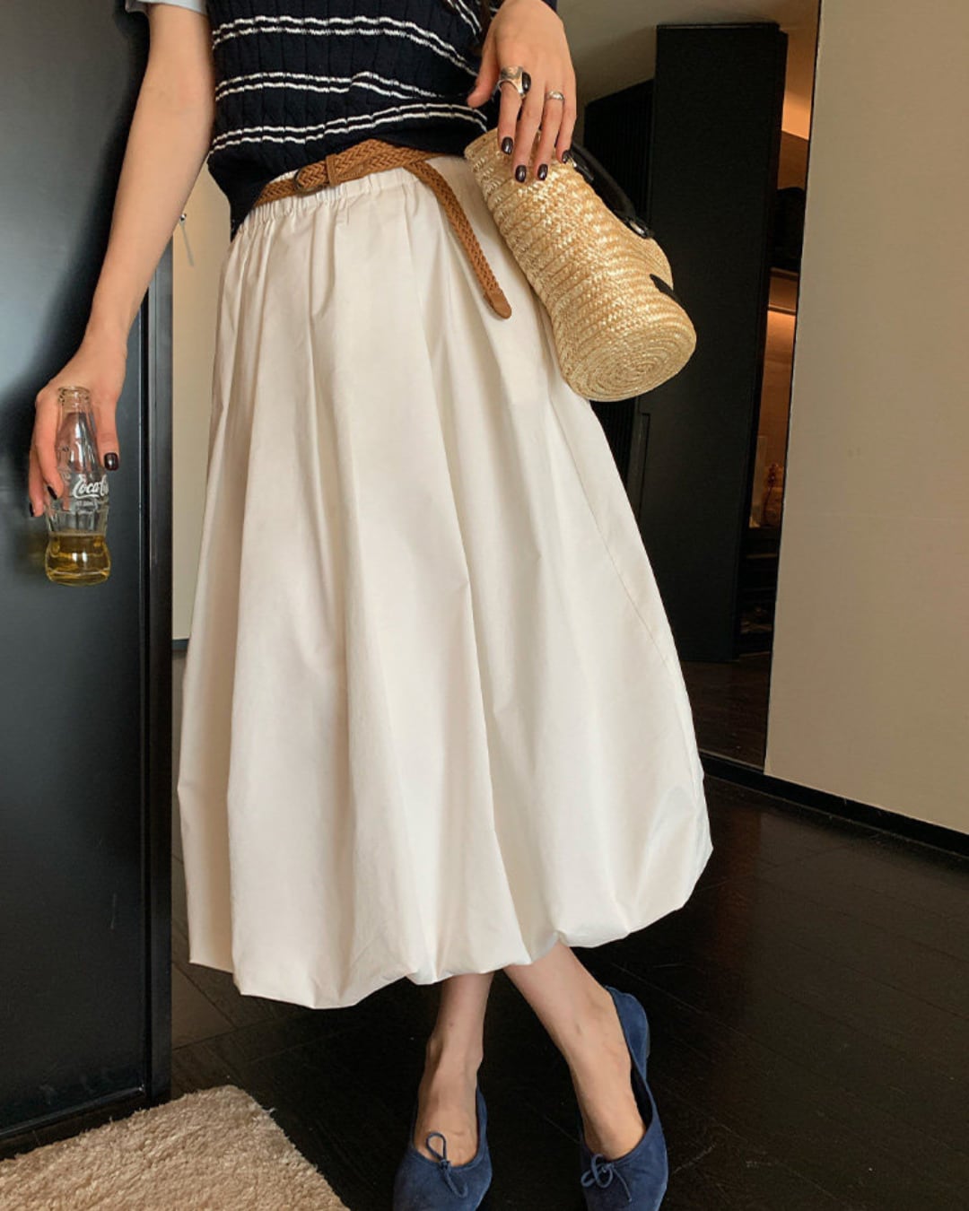 ふんわりと広がる立体シルエットが魅力の、主役級ロングスカート。高めに設定されたウエストラインで腰まわりをすっきり見せ、自然にスタイルアップを叶えてくれる一着。たっぷりと生地を使用したAライン×バルーンフォルムで、歩くたびに優しく揺れるドラマティックなシルエットに。シンプルなトップスと合わせるだけで洗練コーデが完成。カジュアルにもきれいめにも着回せる万能アイテムです。