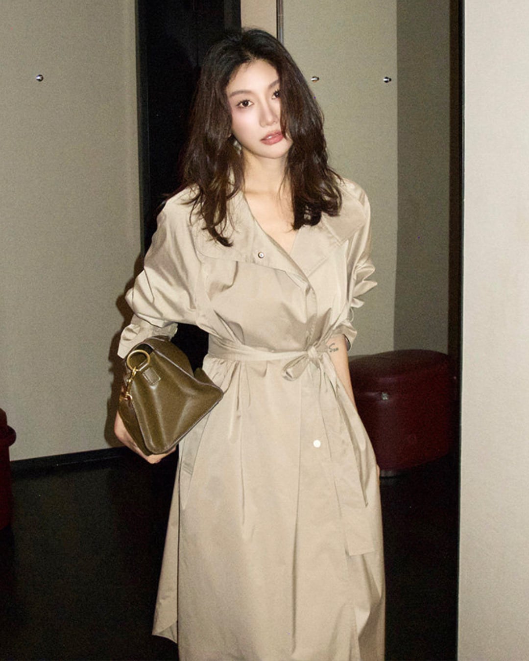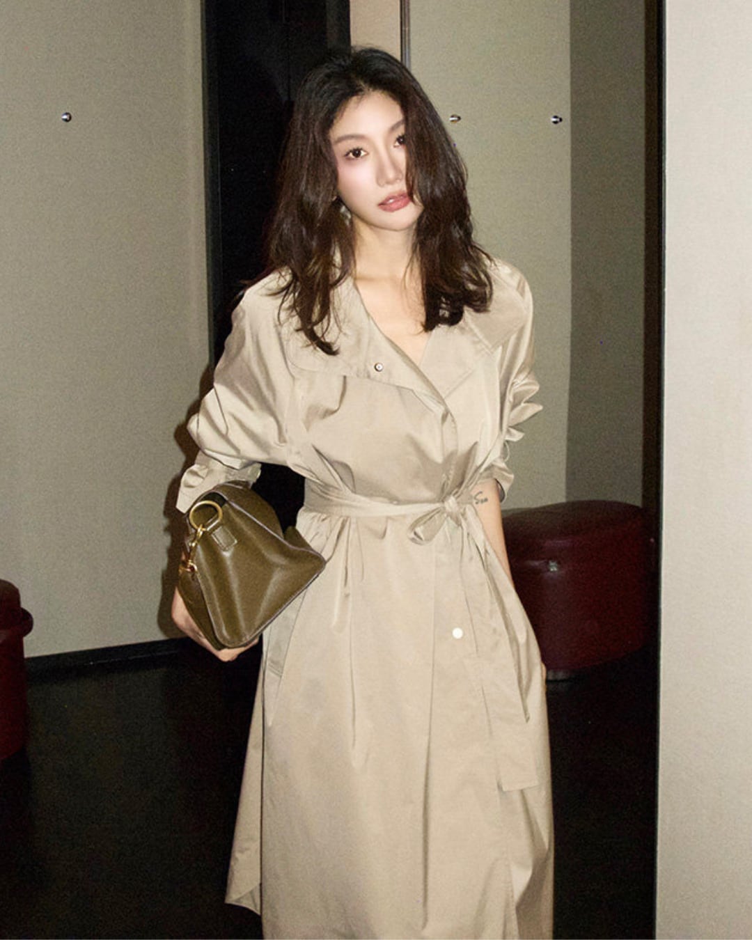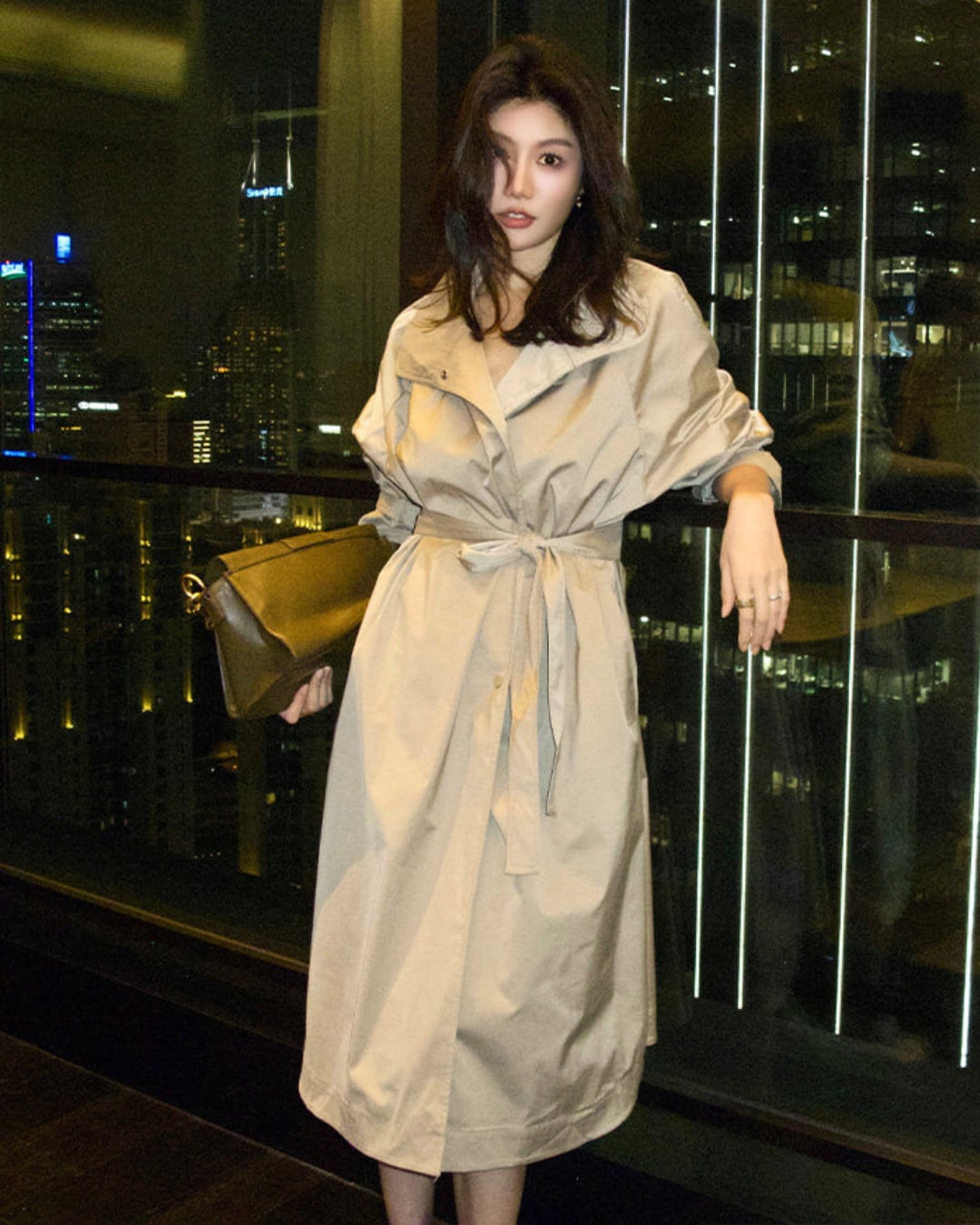 ゆったりとしたビッグカラーが印象的な、洗練シルエットのトレンチコート。柔らかな落ち感のある素材で、さらっと羽織るだけでこなれた雰囲気に。共布ベルトでウエストマークすれば、メリハリのある女性らしいラインを演出します。ロング丈で縦のラインを強調し、スタイルアップ効果も◎カジュアルにもきれいめにも合わせやすい万能アウターです。